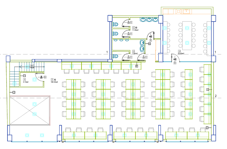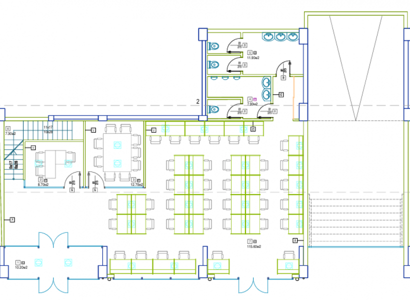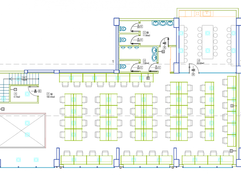 Се изнајмува деловен простор со вкупна површина од 415м², организиран на две нивоа.