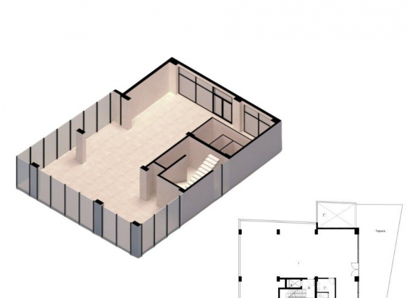 Mezzanine of 176 m2, with access to a terrace with area of 140 m2