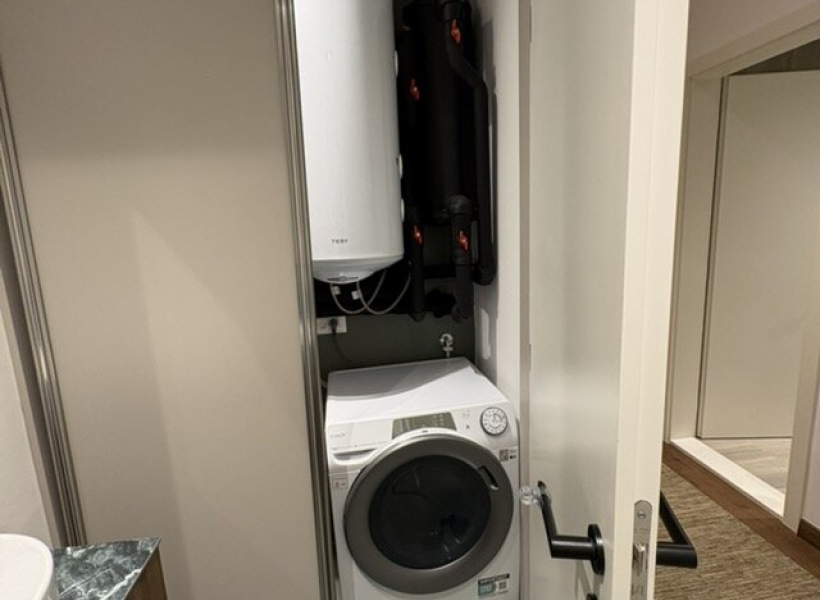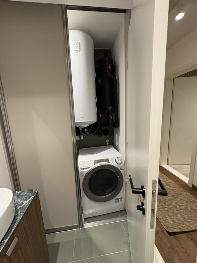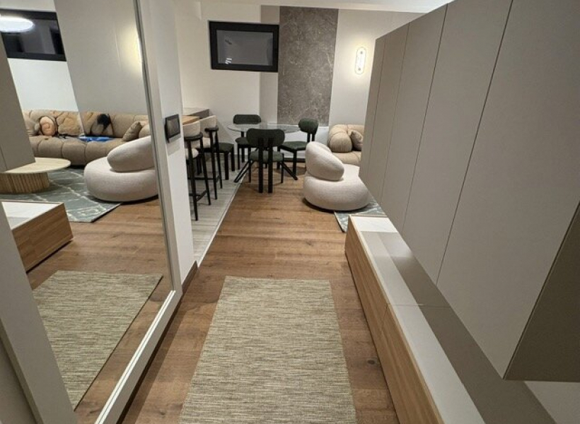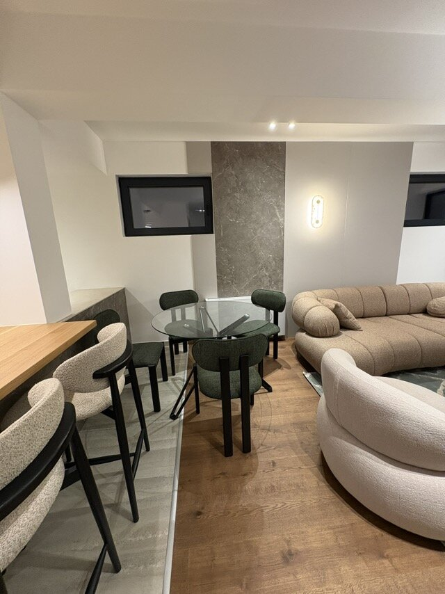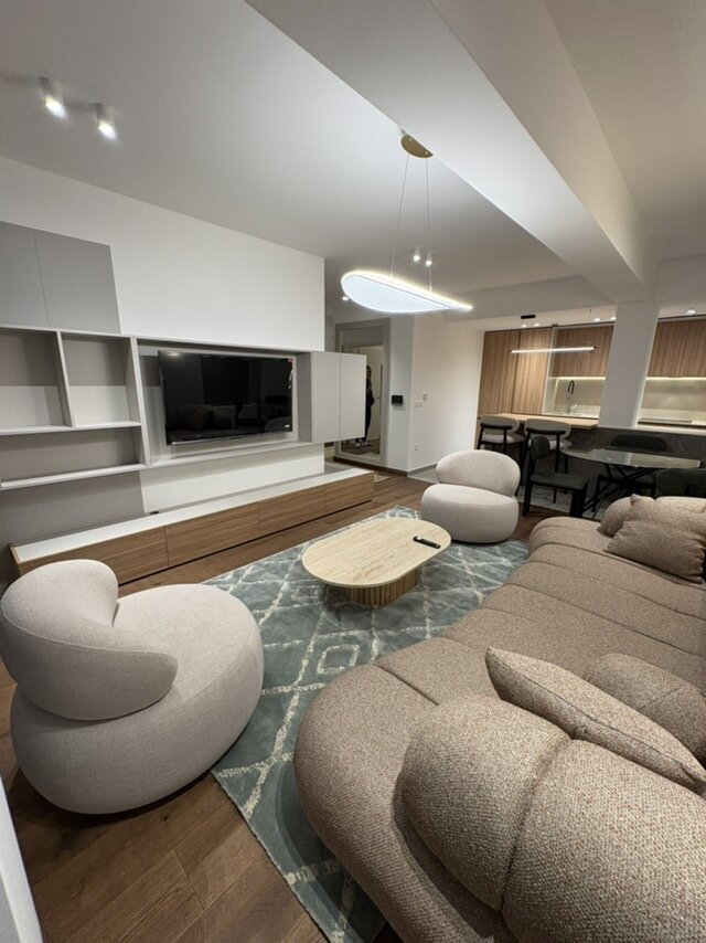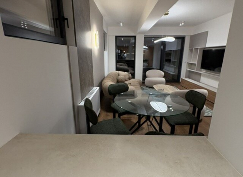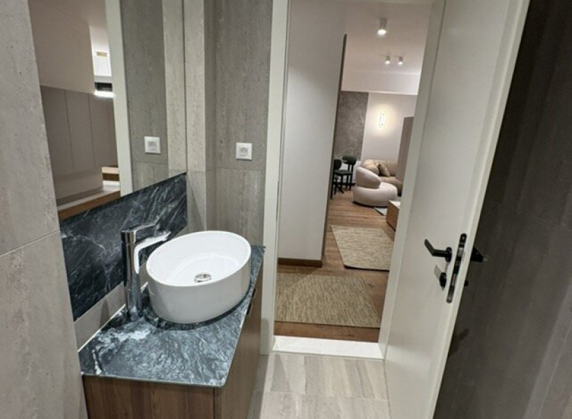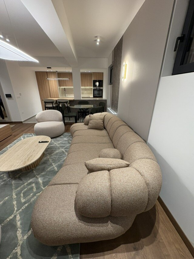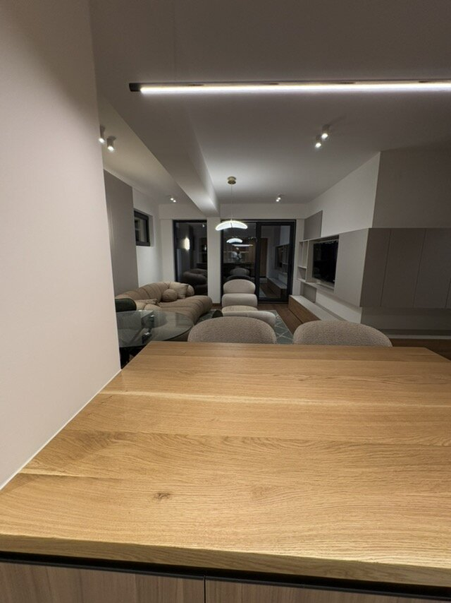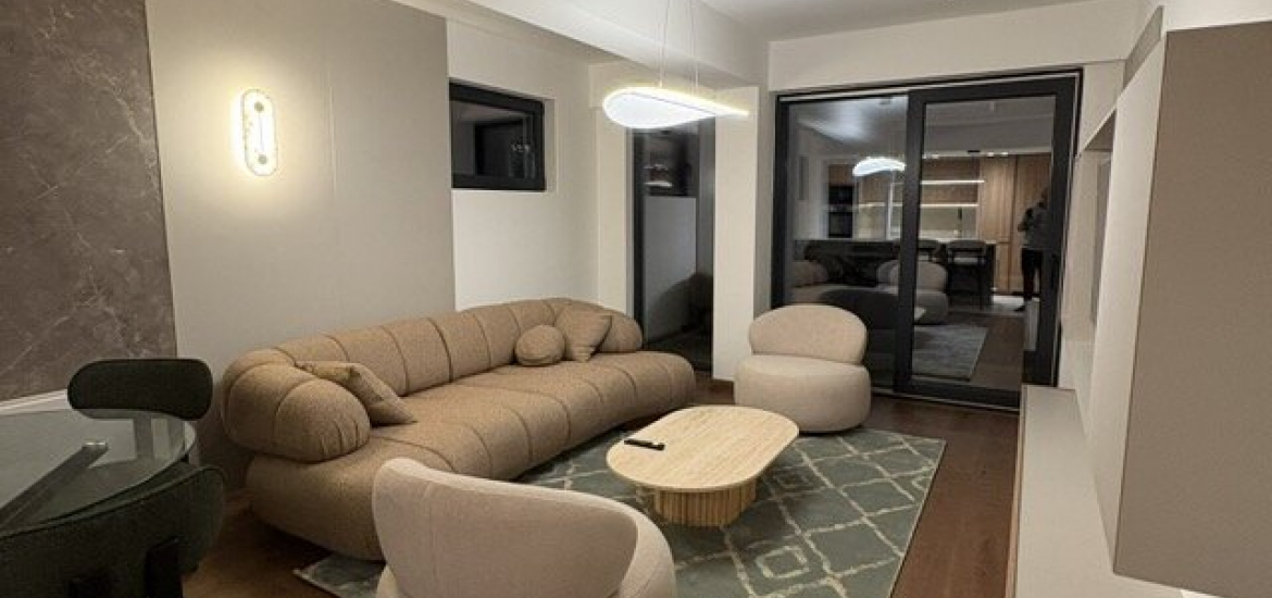 The apartment is in a building with only 4 units, offering high energy efficiency, video surveillance of the entrance and parking, as well as internet and TV installation in every room with a wireless router. It is equipped with children's beds with solid wooden stairs, a comfortable sofa, and rotating armchairs, while the carpets are Belgian-made and anti-allergic. The location is peaceful and quiet, just a 10-minute walk to Diamond Mall, and close to kindergartens, a primary school, playgrounds, and a market.