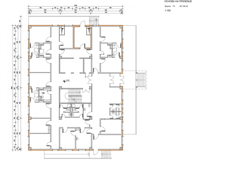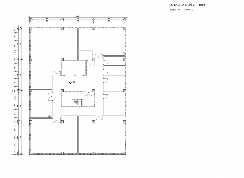 The building has a total area of 1650m2, divided into 3 levels: basement, ground floor and first floor.