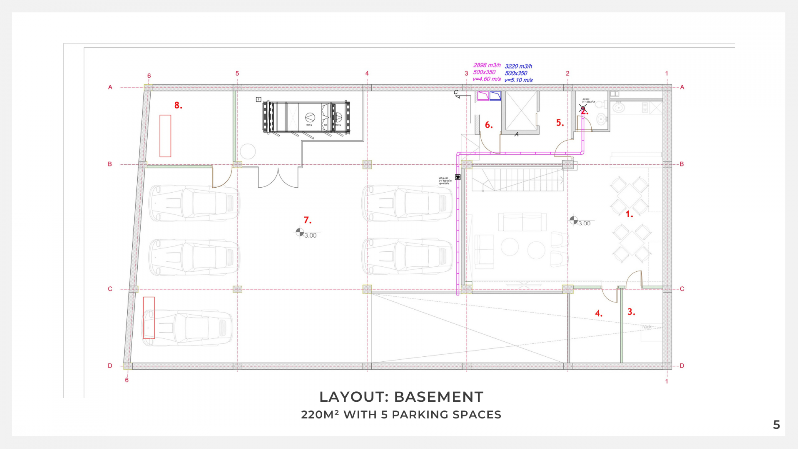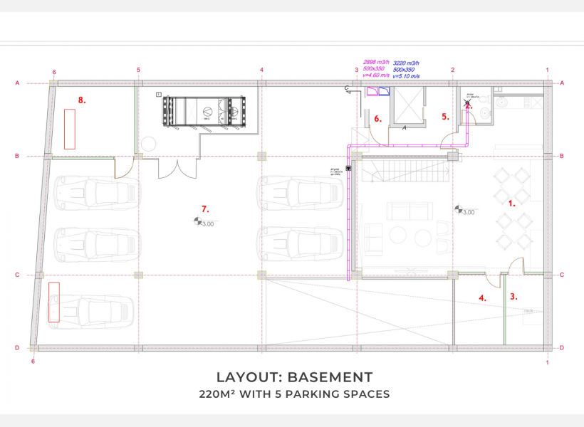 The space available for rent consists of a basement (cellar) and three floors, with a total net area of 560m², including 5 parking spots in an underground garage.