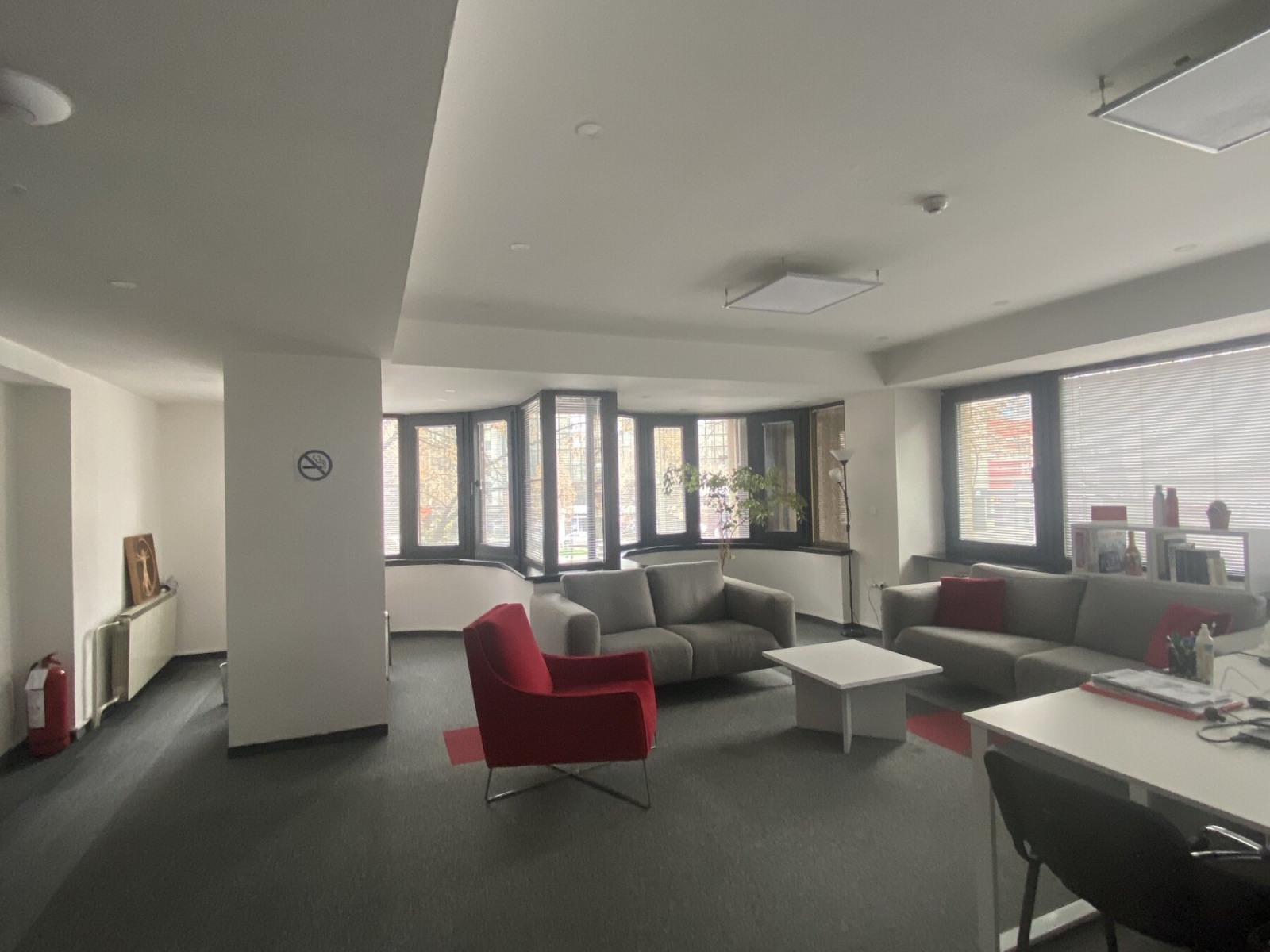 The space is located on the mezzanine floor with a separate entrance and the possibility of a reception area, depending on the tenant's needs.