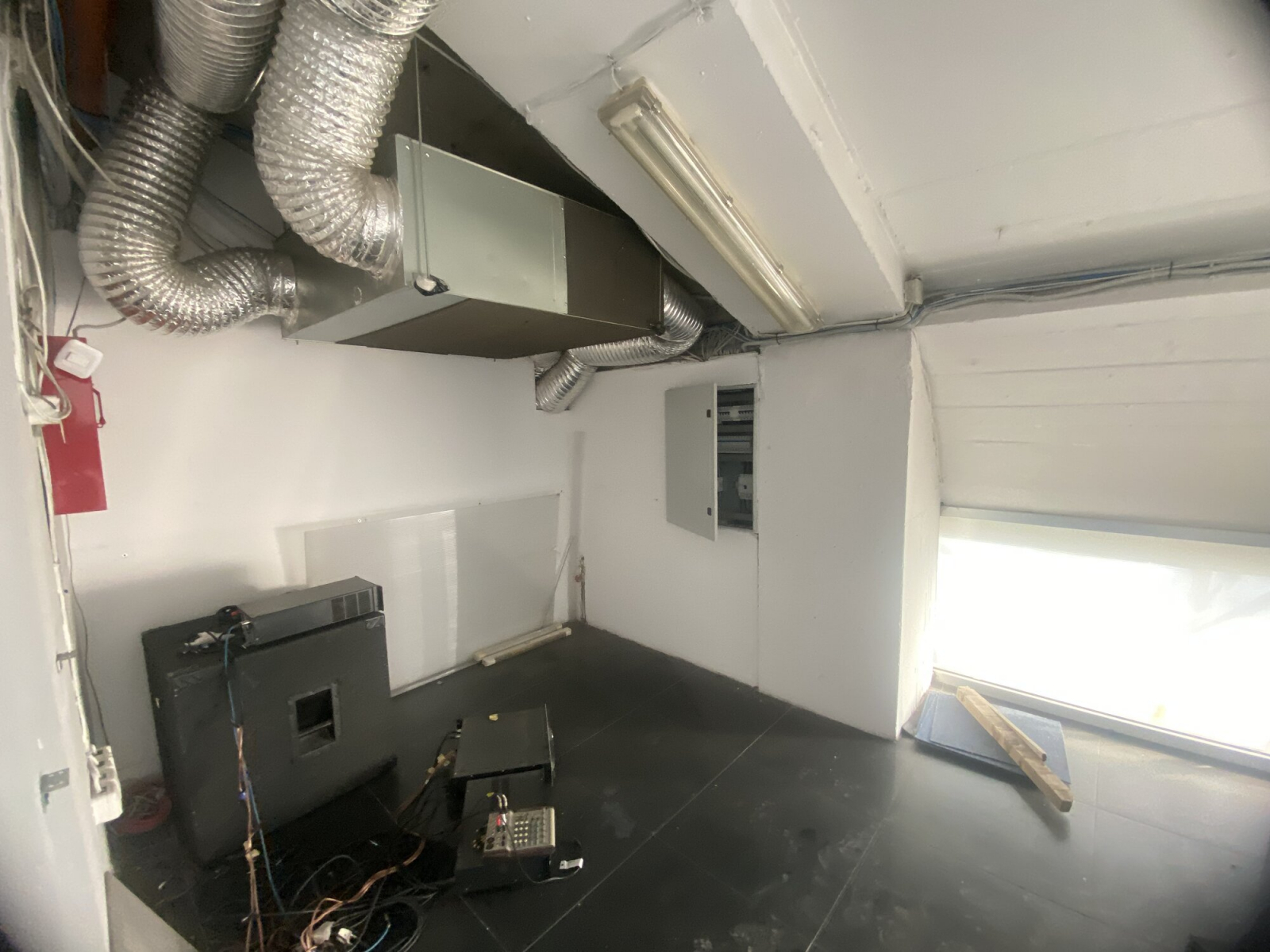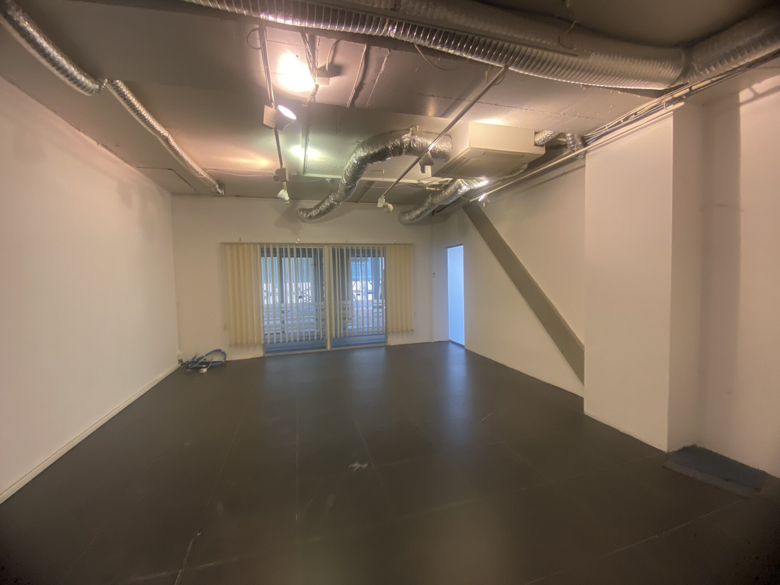 Heating and cooling in the space is regulated through heat pumps with fan coils.