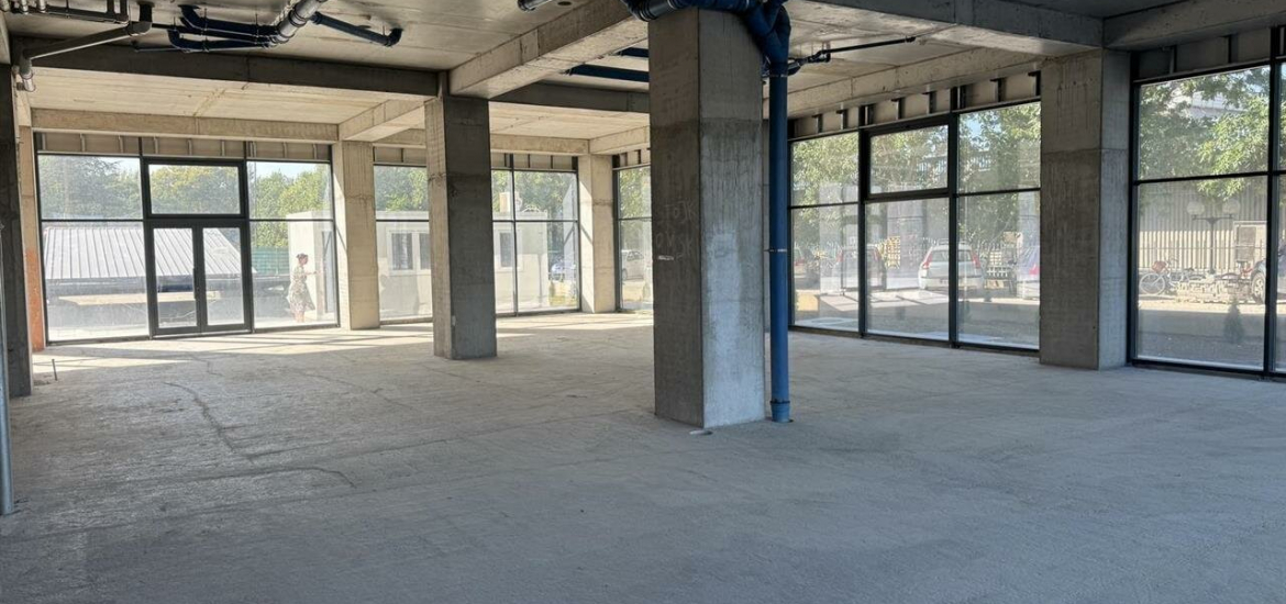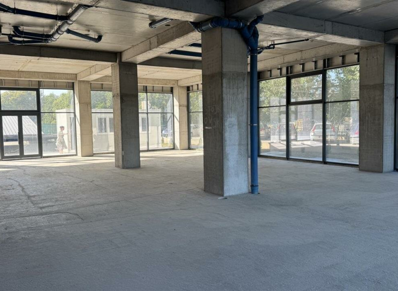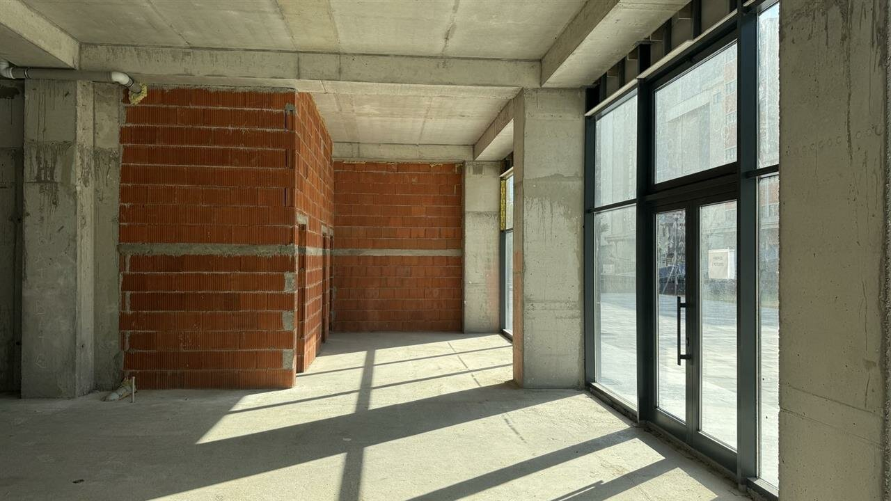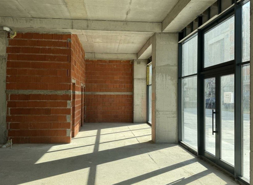 The property is currently in a shell and core stage (unfinished interior), divided into two sections: