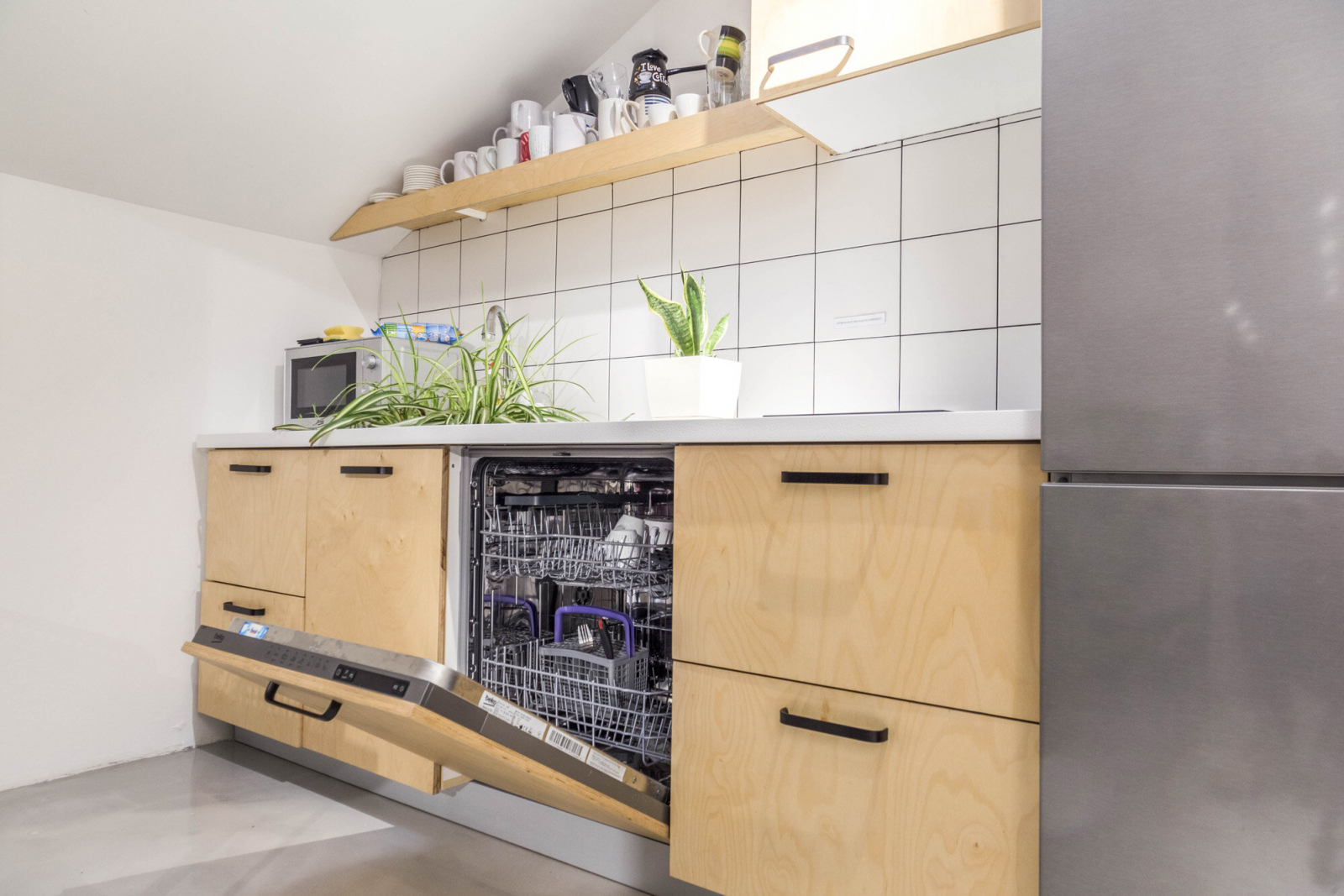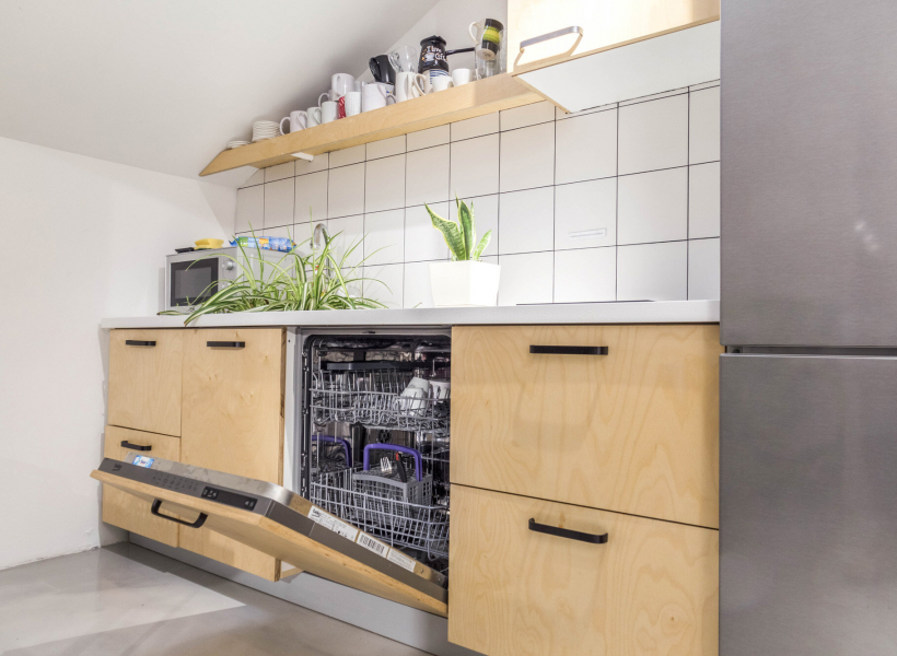 Equipment and inventory include: large dishwasher, large refrigerator with freezer, water dispenser, Nespresso coffee machine, microwave oven, and electric stove.