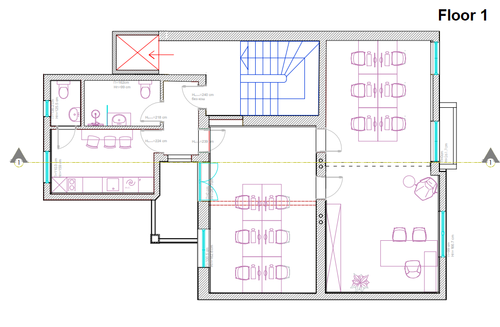The property is located in a quiet area in Debar Maalo and has a total area of 300m2 on 3 levels as follows: