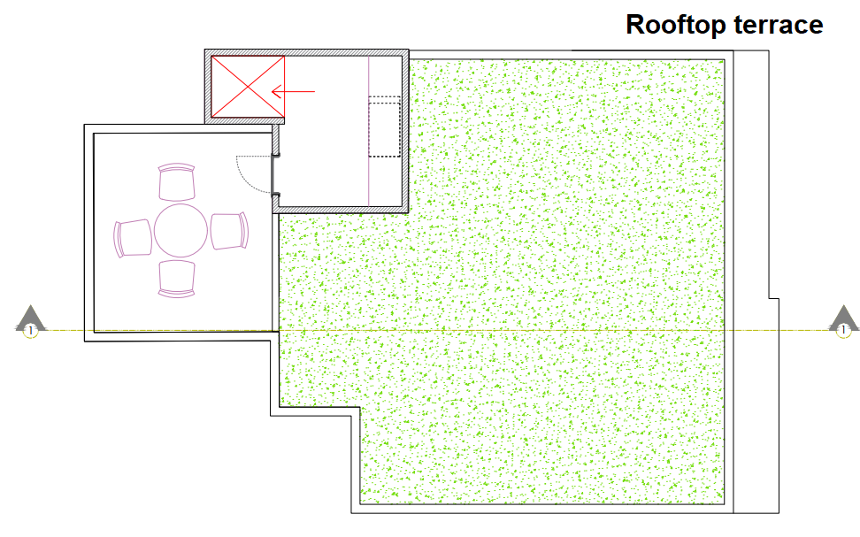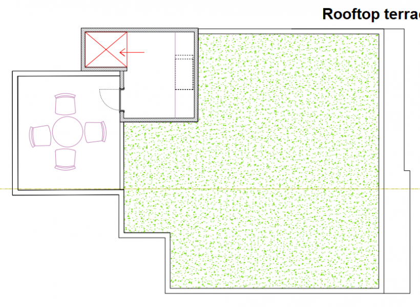 The property includes a private yard of 100m2 and a rooftop terrace of 40m2, which are provided for use free of charge.