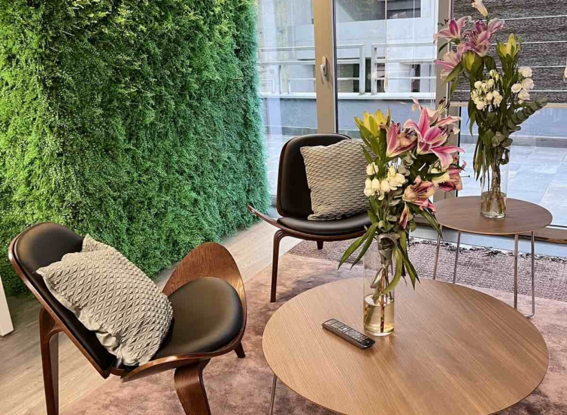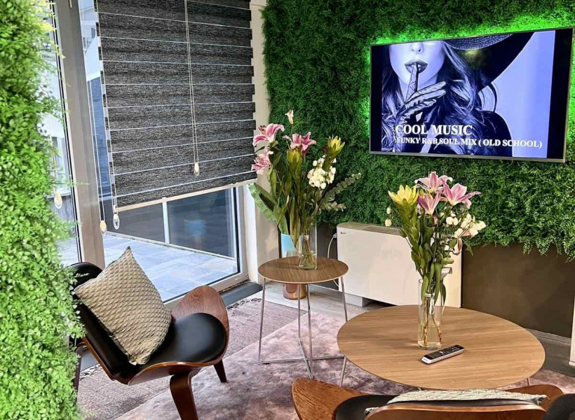 Heating and cooling are regulated through air conditioners and fan coil units.