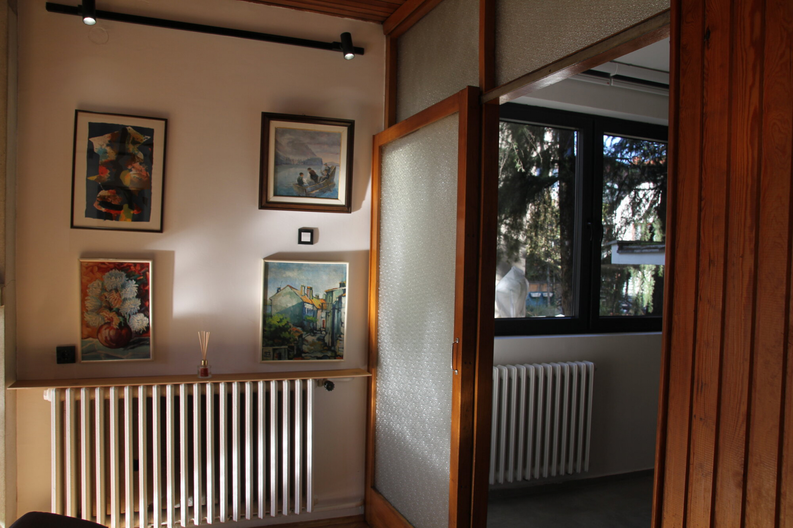 Heating is electric, regulated by modern devices. The building doesn't have an elevator.
