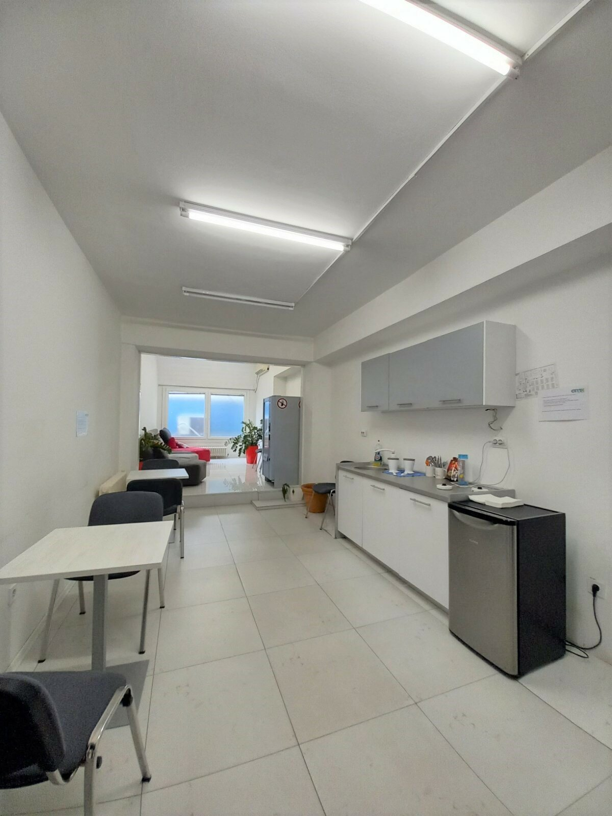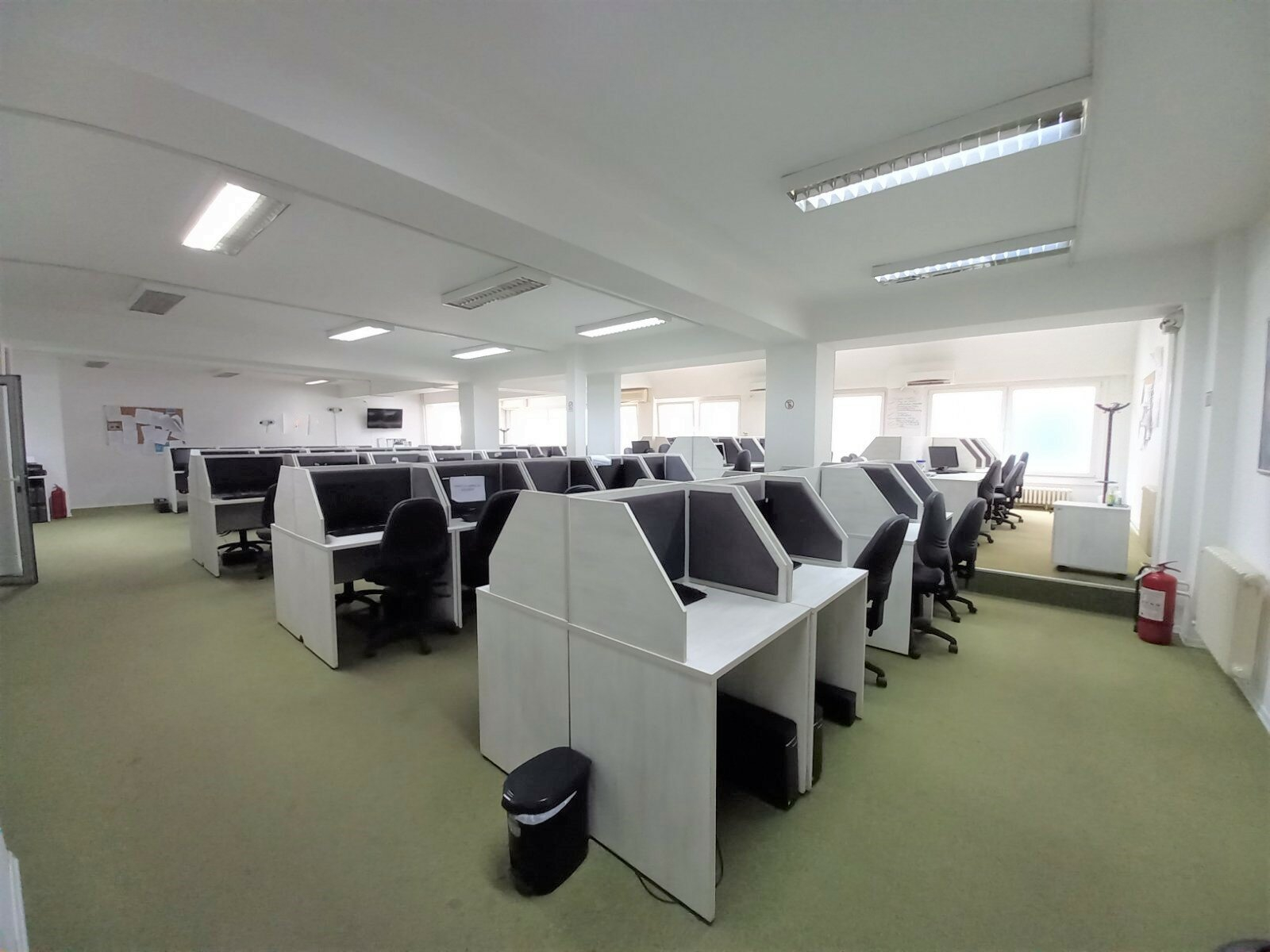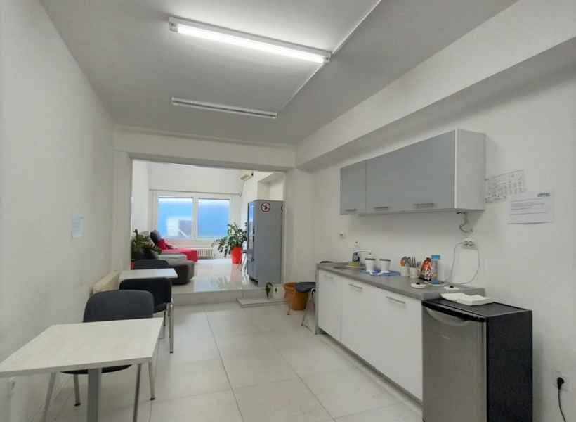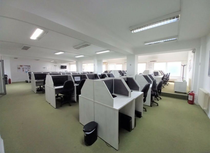 The office space is located on the 1st floor and has an open space with 94 work positions, two management offices, two offices with 4 work positions, a conference room for 14 people, office with 24 work positions, server room, kitchen and toilets.