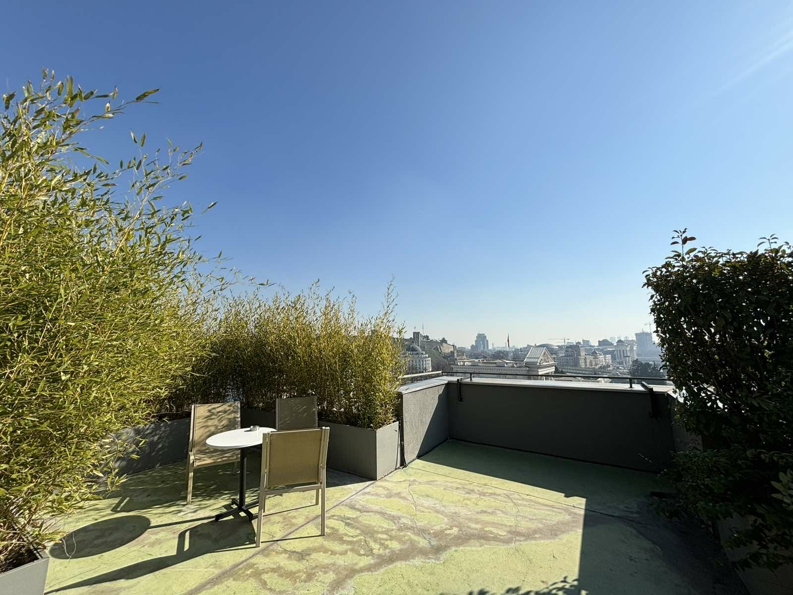 The space has an access to a rooftop terrace which provides a unique view and atmosphere.