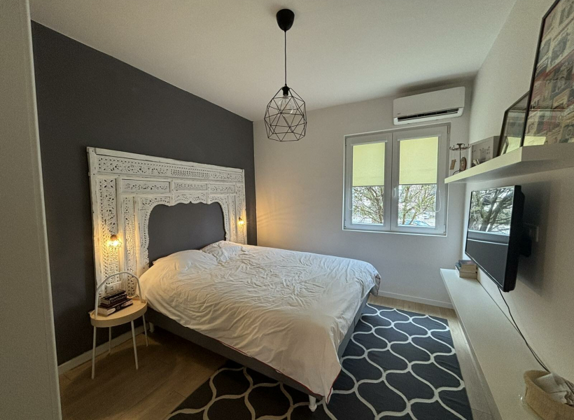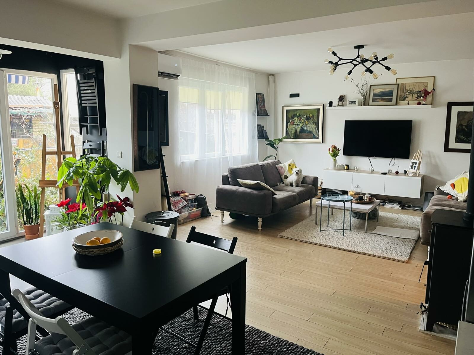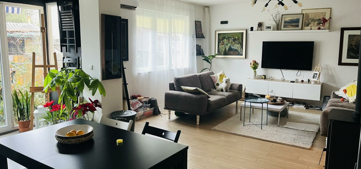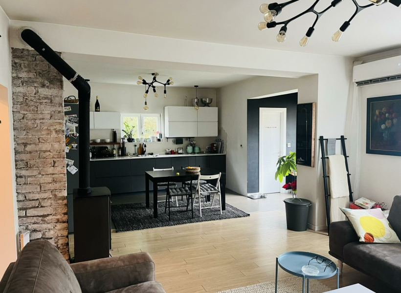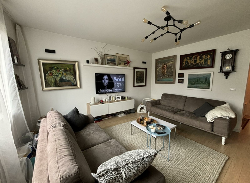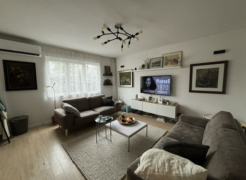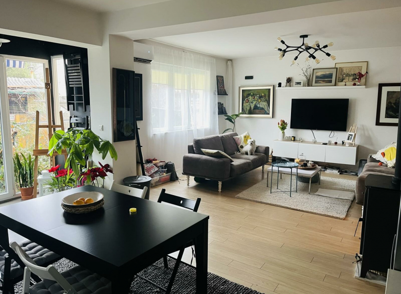 Станот е со површина од 83м2 и располага со 2 спални соби, дневна соба, кујна со трпезарија, бања, тоалет, како и фино уредено дворче со летна кујна.