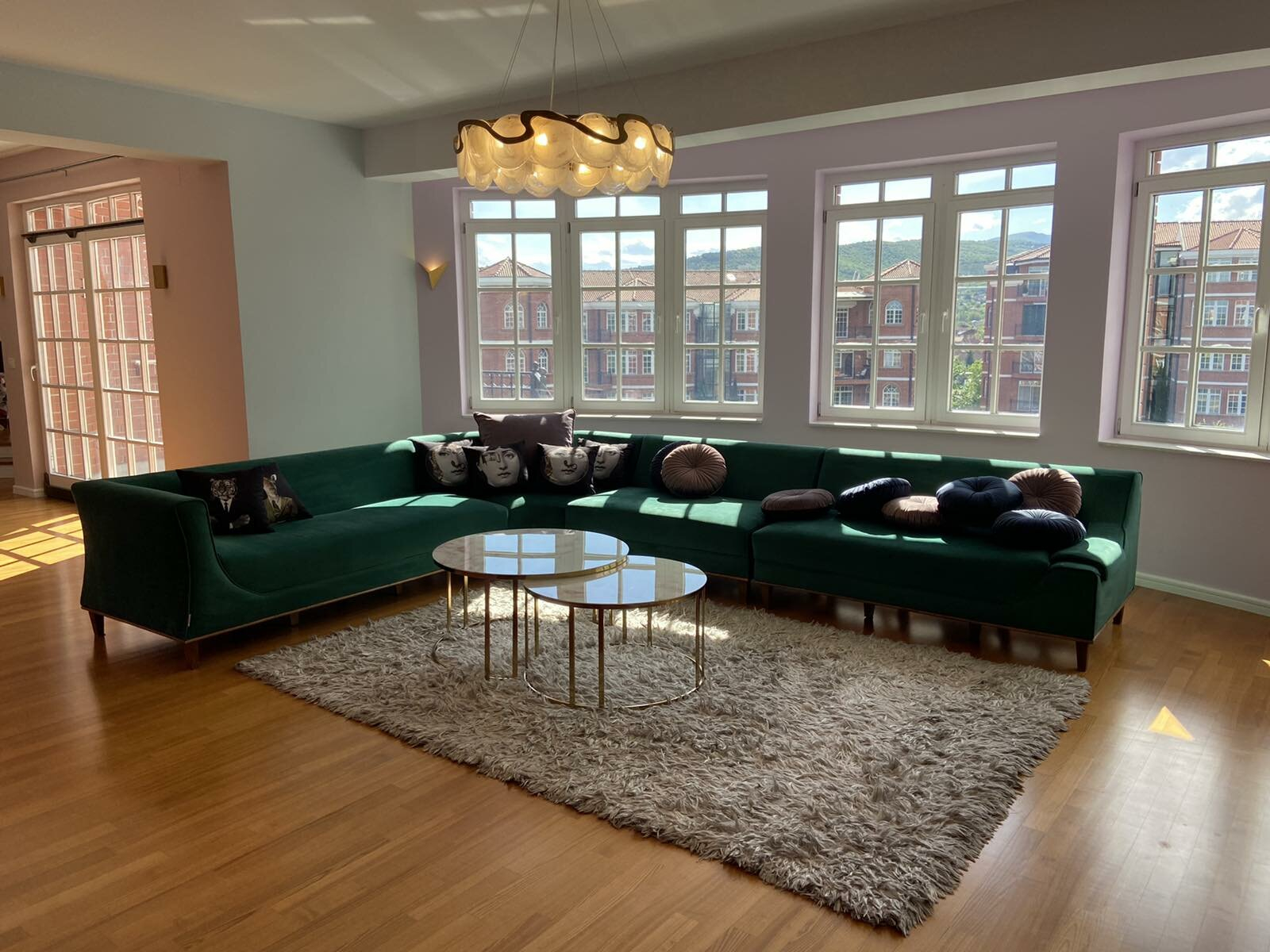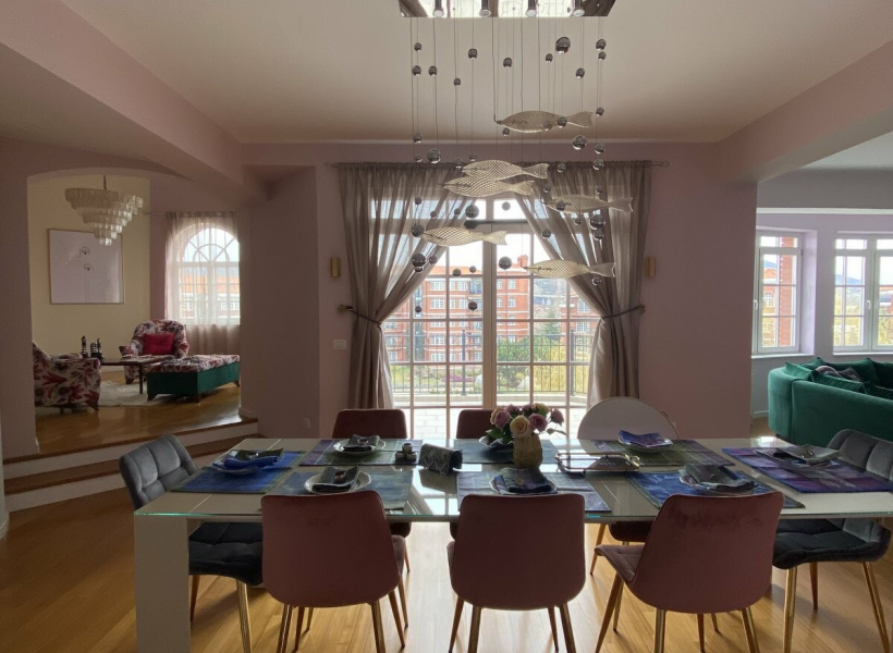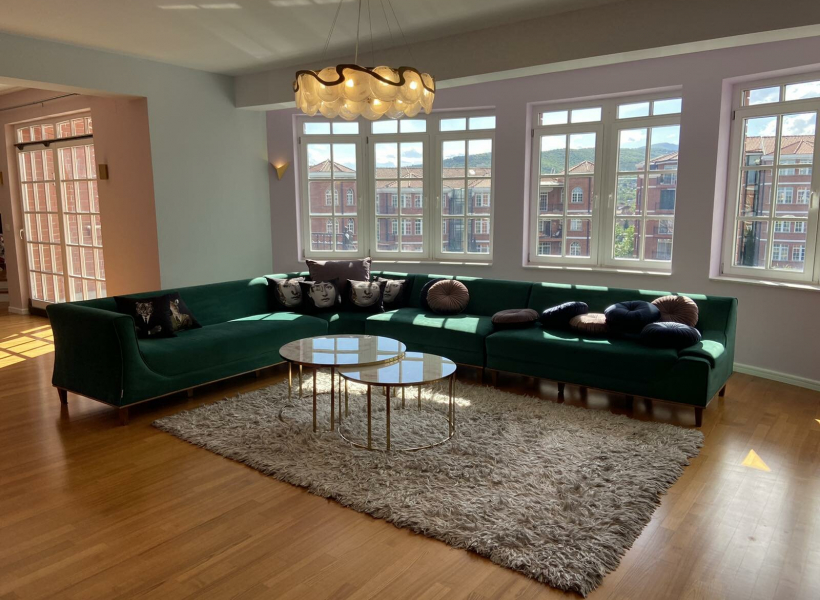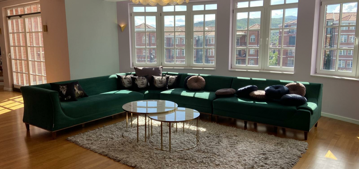 Се изнајмува нов стан во комплексот Верина, лоциран на трети кат во зграда со лифт, со приватен влез на самиот кат и вкупна површина од 212м2.