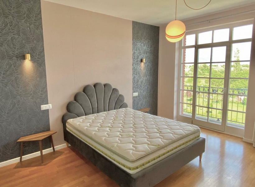 Станот е сосема нов, кој моментално се доопремува и ќе се изнајмува комплетно опремен со нов и луксузен мебел, располага со три спални соби, просторна дневна соба заедно со посебна просторија која располага со камин на дрва, посебна кујна, три бањи, остава и две тераси.