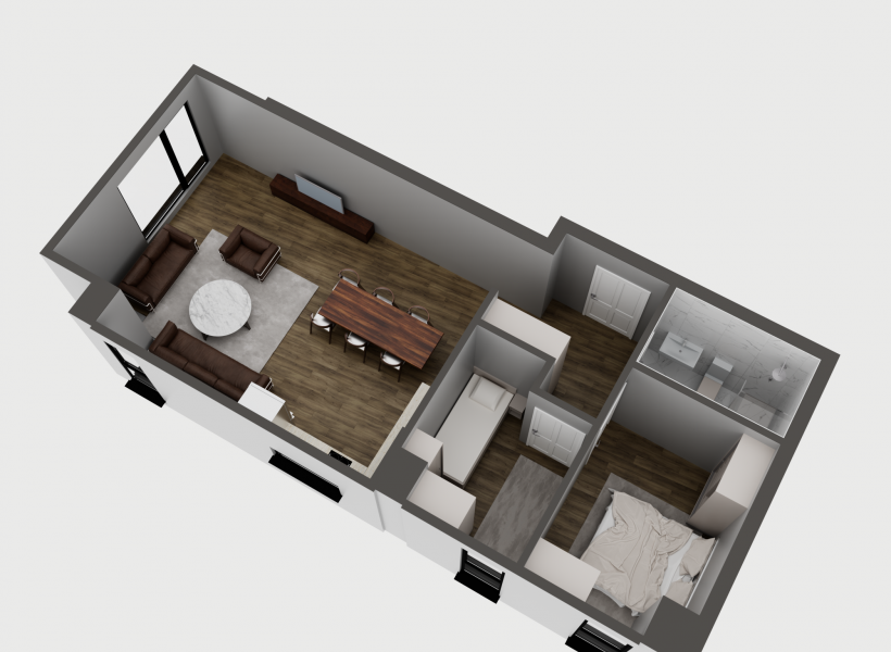 Во понуда се современи станови од 47м² до 137м² во модерен станбен објект во Центар, во непосредна близина на Diamond. Становите се изведени со врвен квалитет и современи материјали, со посебен фокус на удобност, енергетска ефикасност и долговечност. Објектот, составен од приземје, четири ката и поткровје, вклучува вкупно 17 станови, нудејќи идеално решение за оние кои бараат современ, функционален и комфорен простор за живеење.