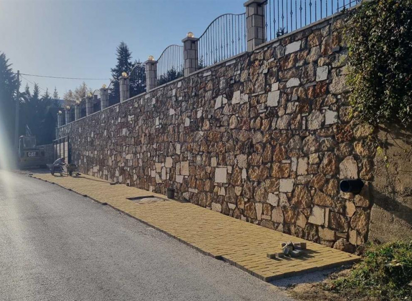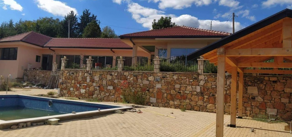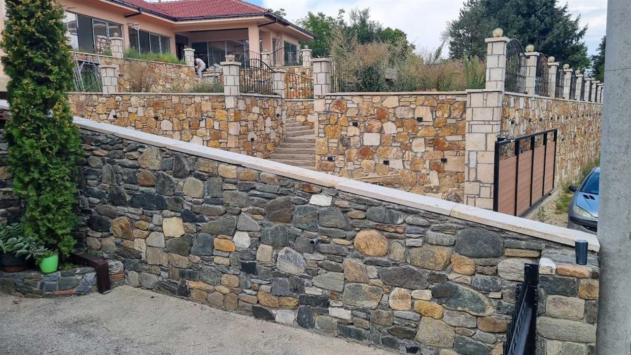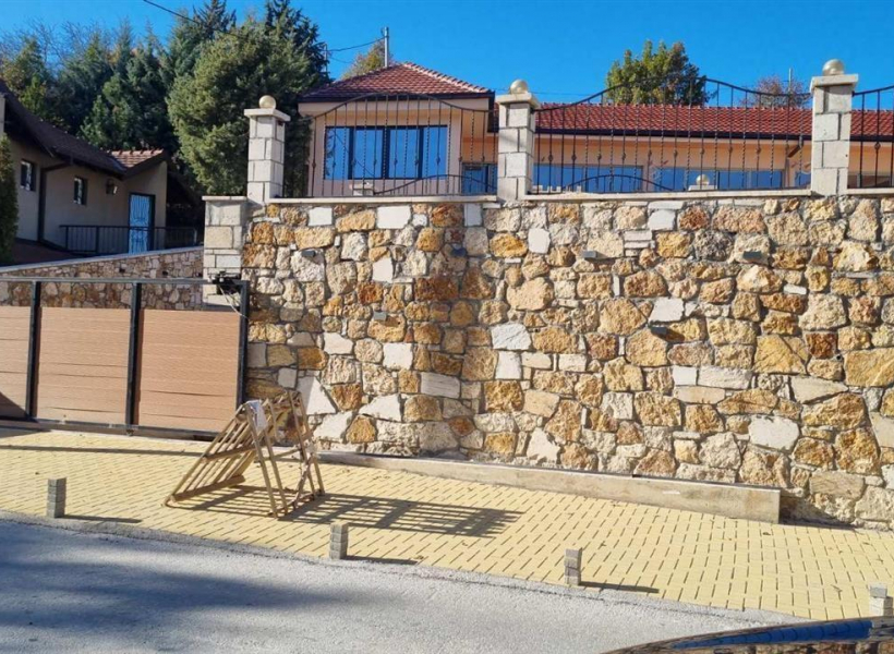 Додатни предности на имотот се ѕидовите обложени со травертин камен и модерната градба изведена со квалитетни материјали.
