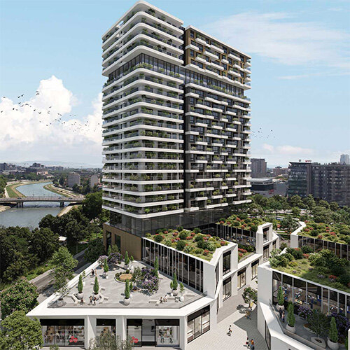 Се изнајмува деловен простор 63м2 во новиот комплекс Grand River во Центар.