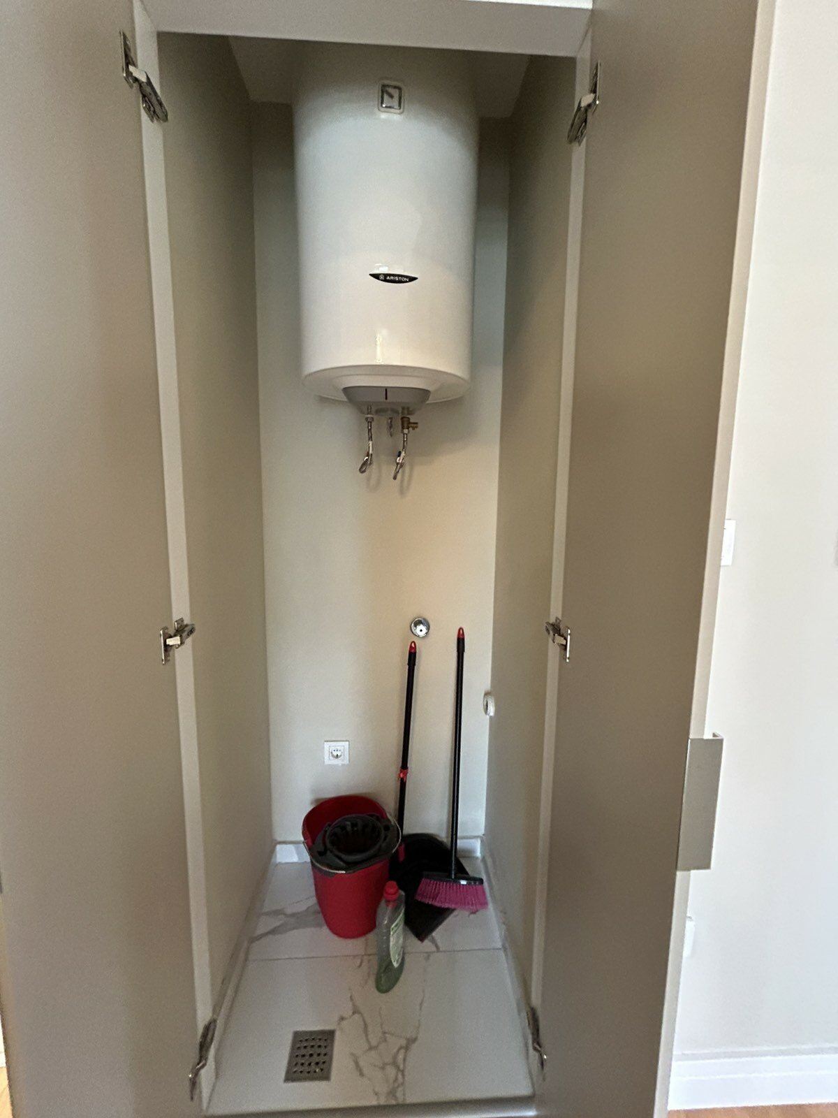 Греење и ладење е регулирано преку градско парно и клима уреди.