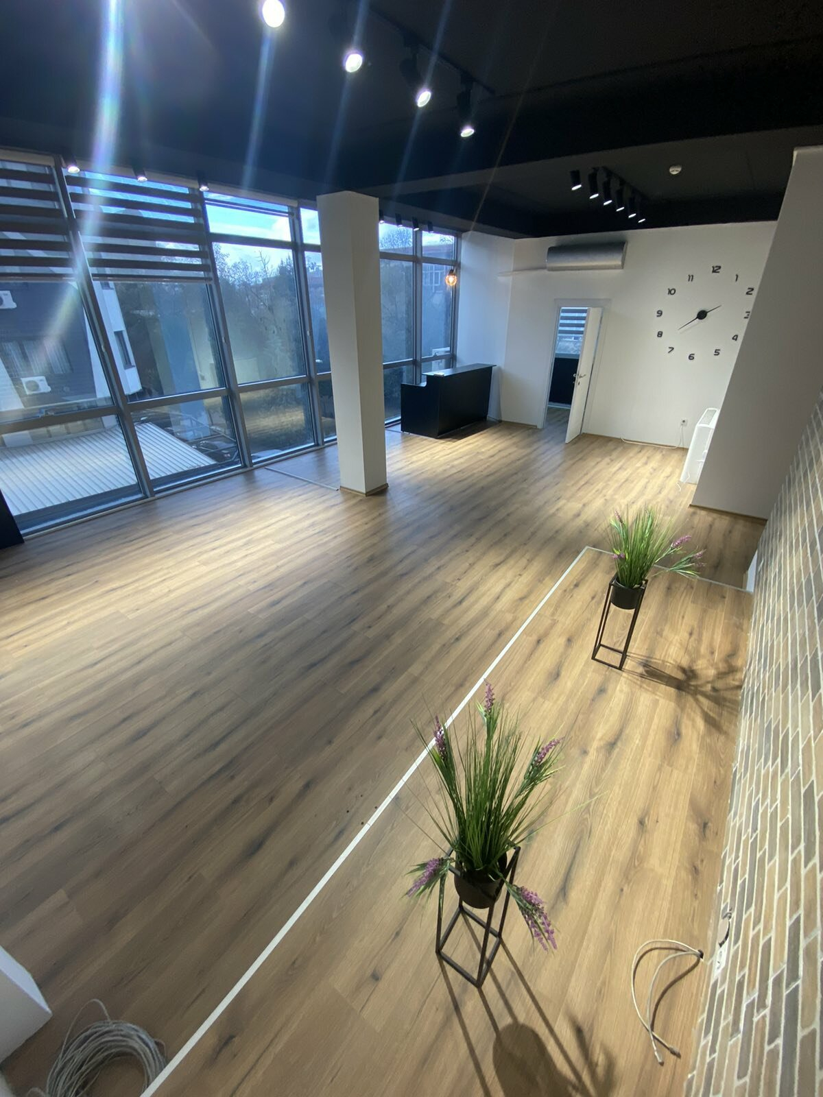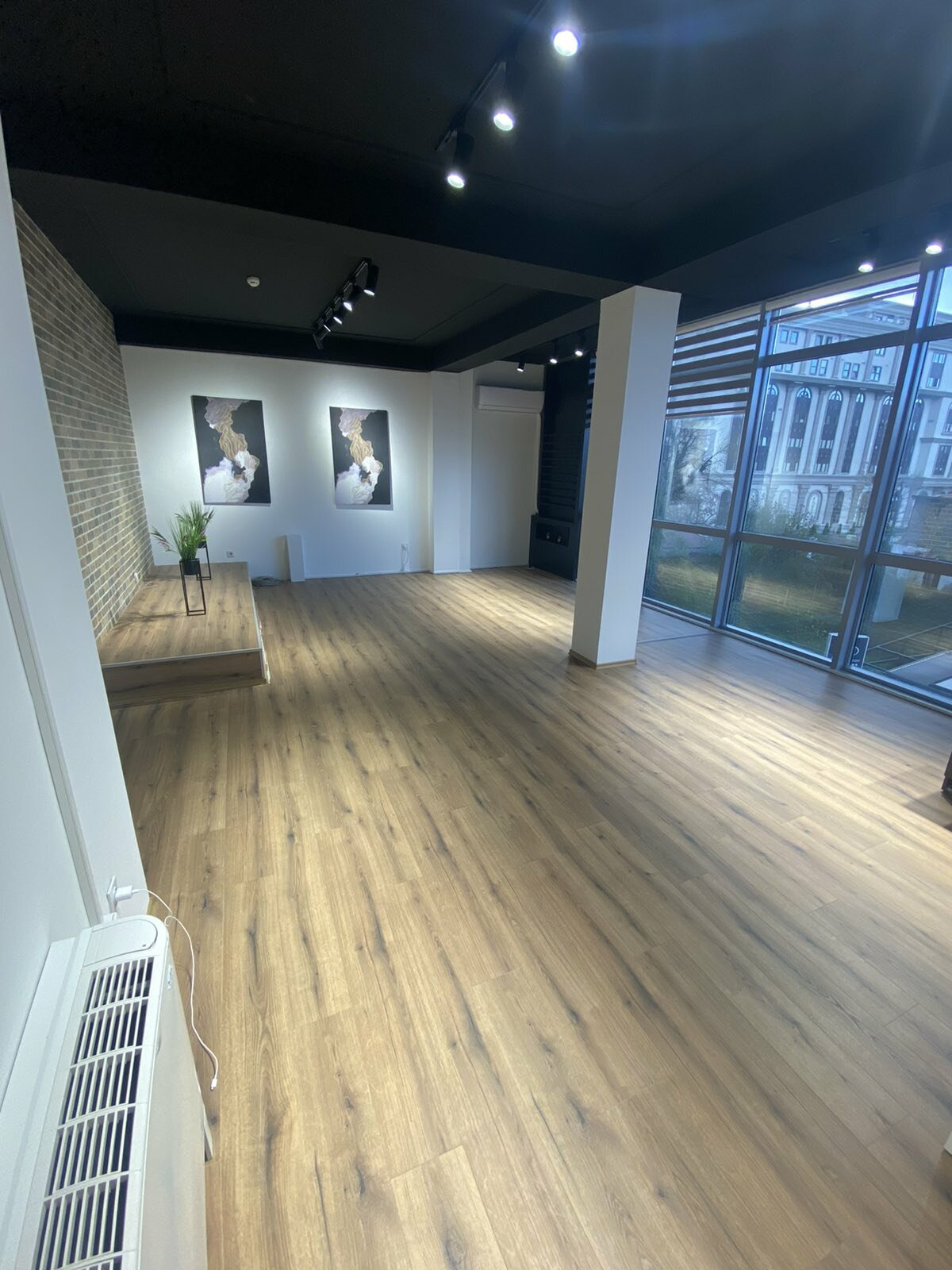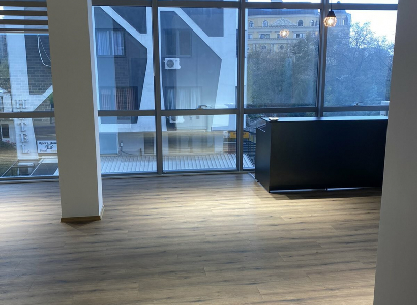 Просторот е лоциран на 2ри кат и располага со површина од 63м2, со една посебна канцеларија, чајна кујна и тоалет.