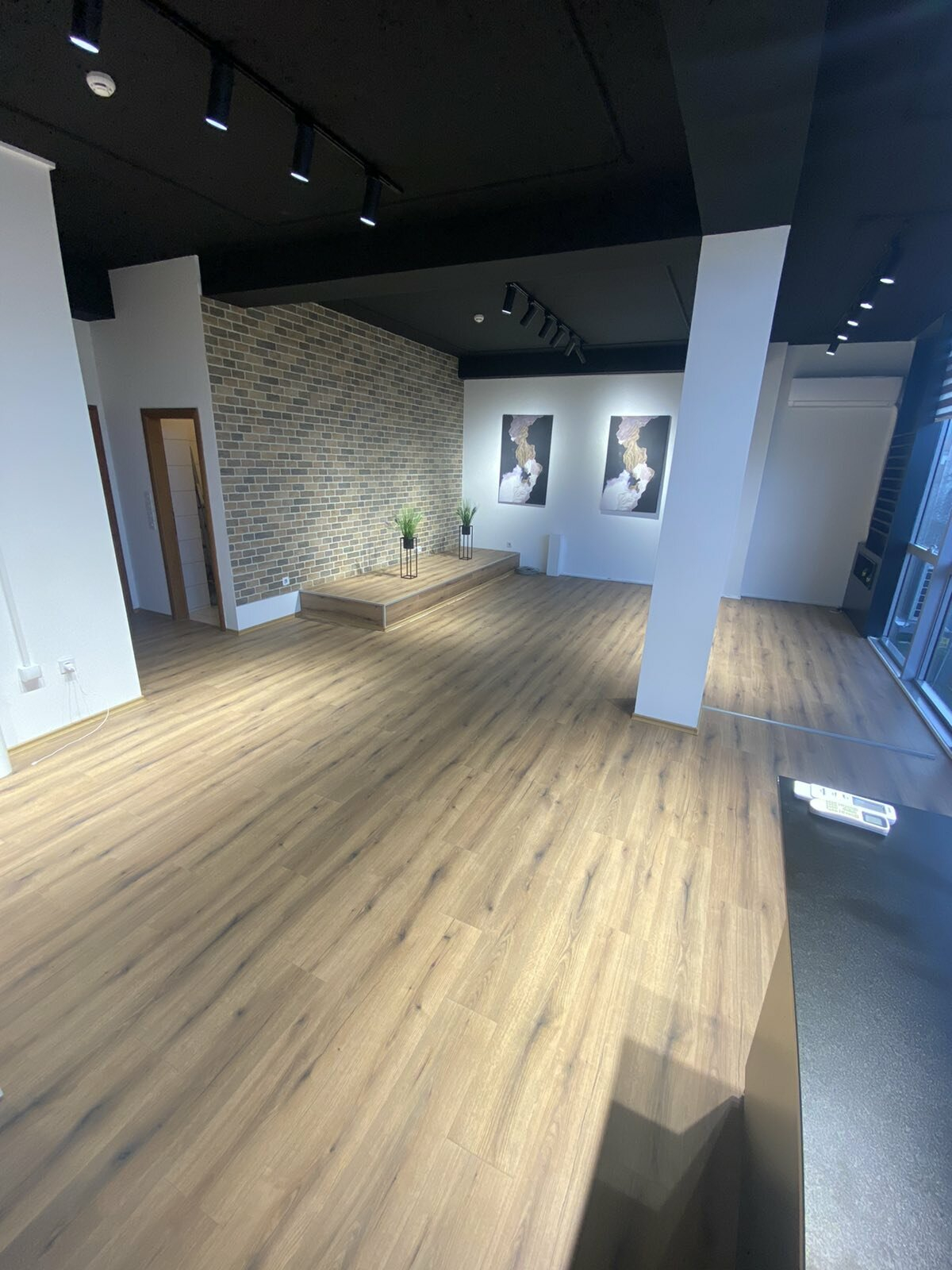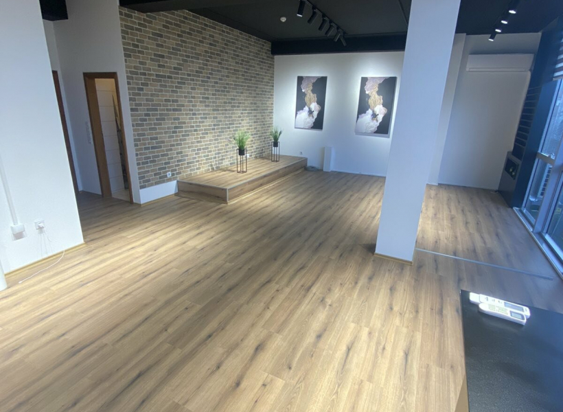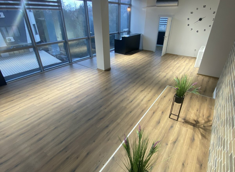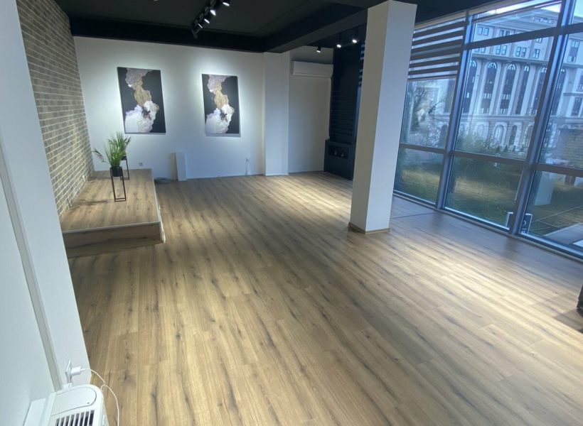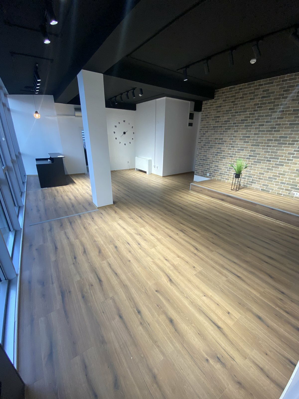 Просторот е лоциран на 2ри кат и располага со површина од 63м2, со една посебна канцеларија, чајна кујна и тоалет.