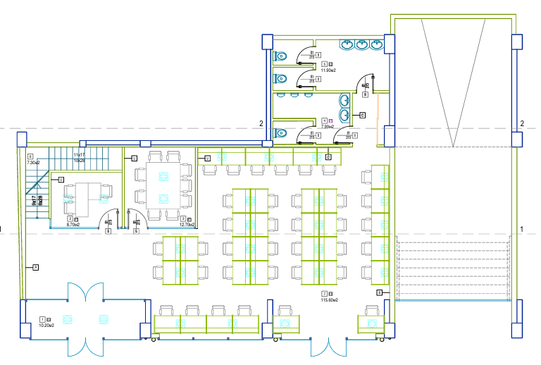 Се изнајмува деловен простор со вкупна површина од 415м², организиран на две нивоа.