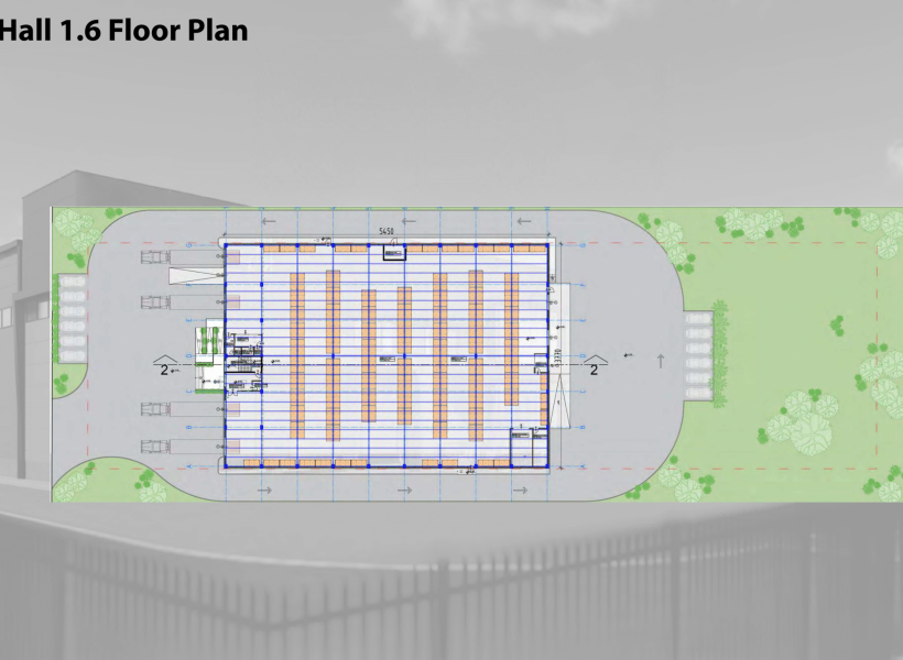 Објектот се состои од магацински простор од 2055м2 и административен дел од 247м2.