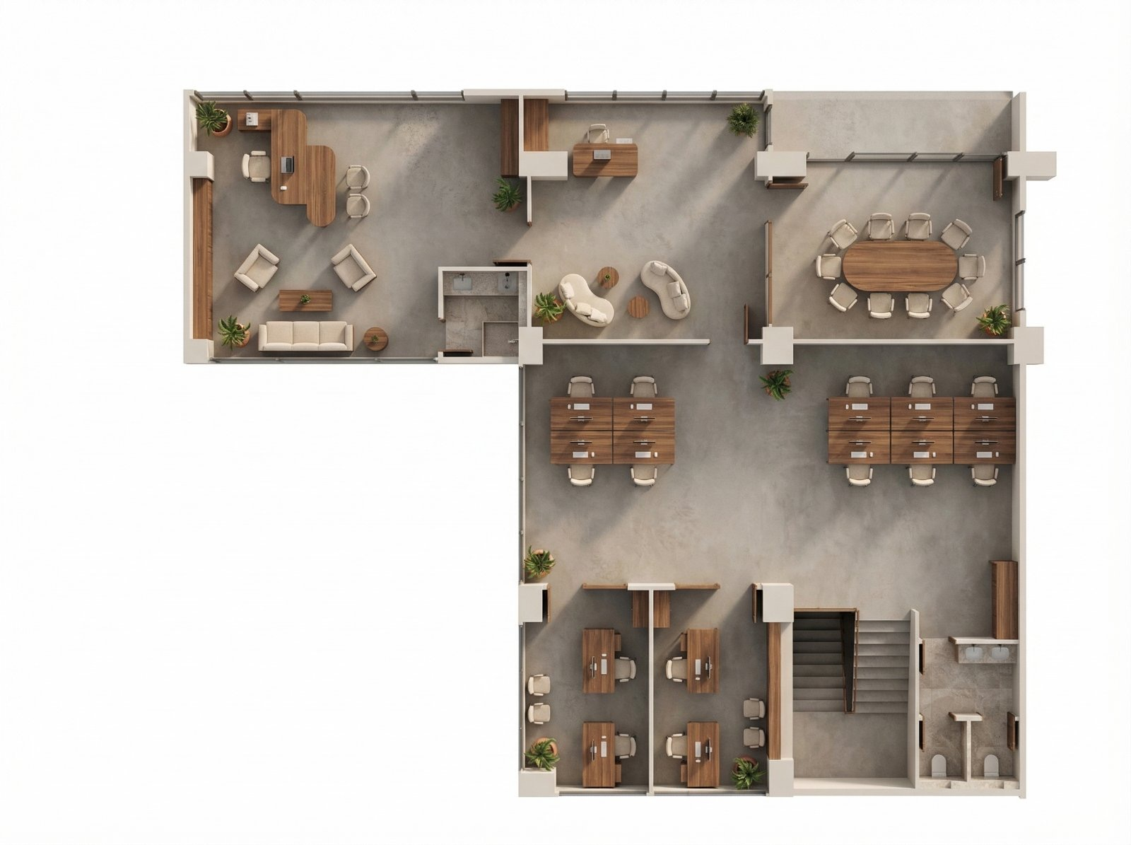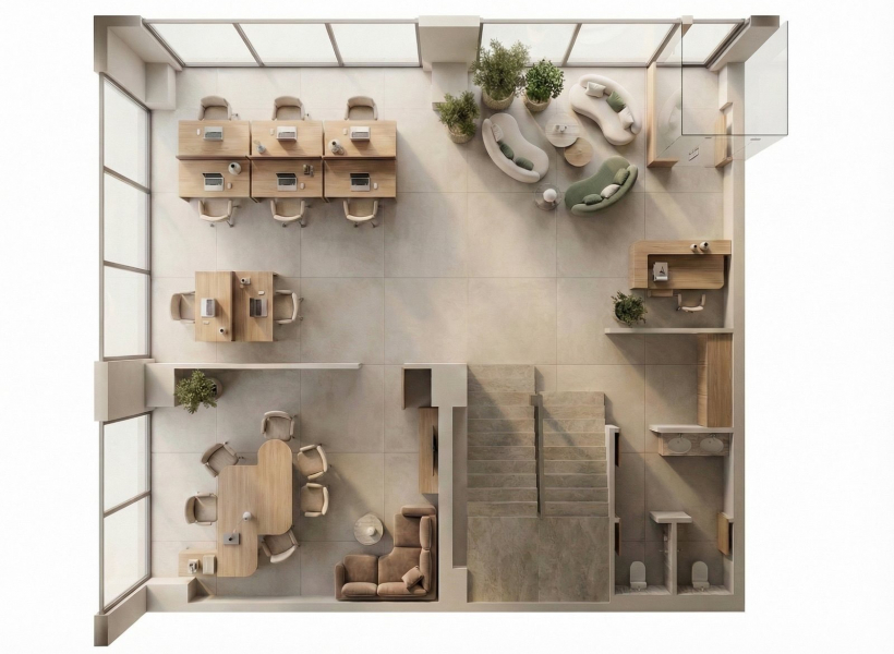 Деловниот е со вкупна квадратура 435м2, поделен на: