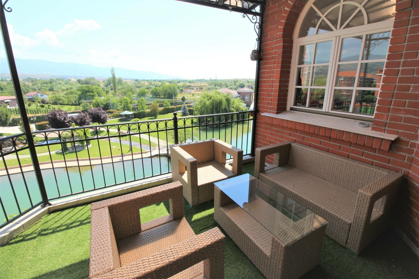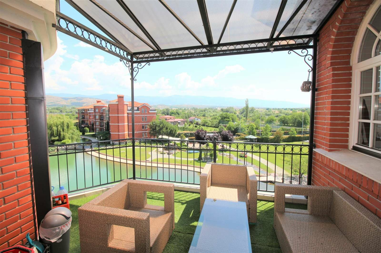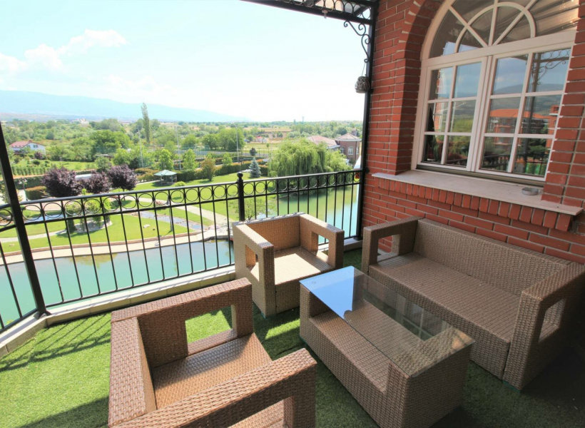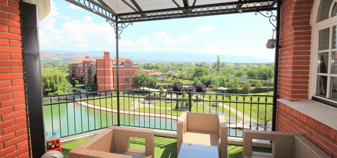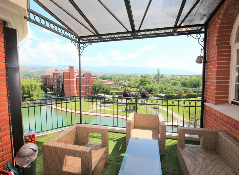 The apartment is fully equipped with top quality furniture and has three bedrooms with separate bathrooms for each bedroom, large and spacious living room with dining area, separate kitchen, separate room with functional fireplace and terrace with beautiful view of the lake in the complex.