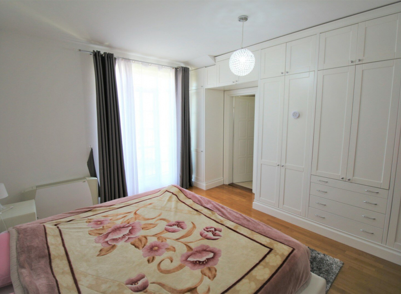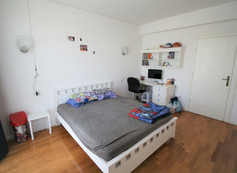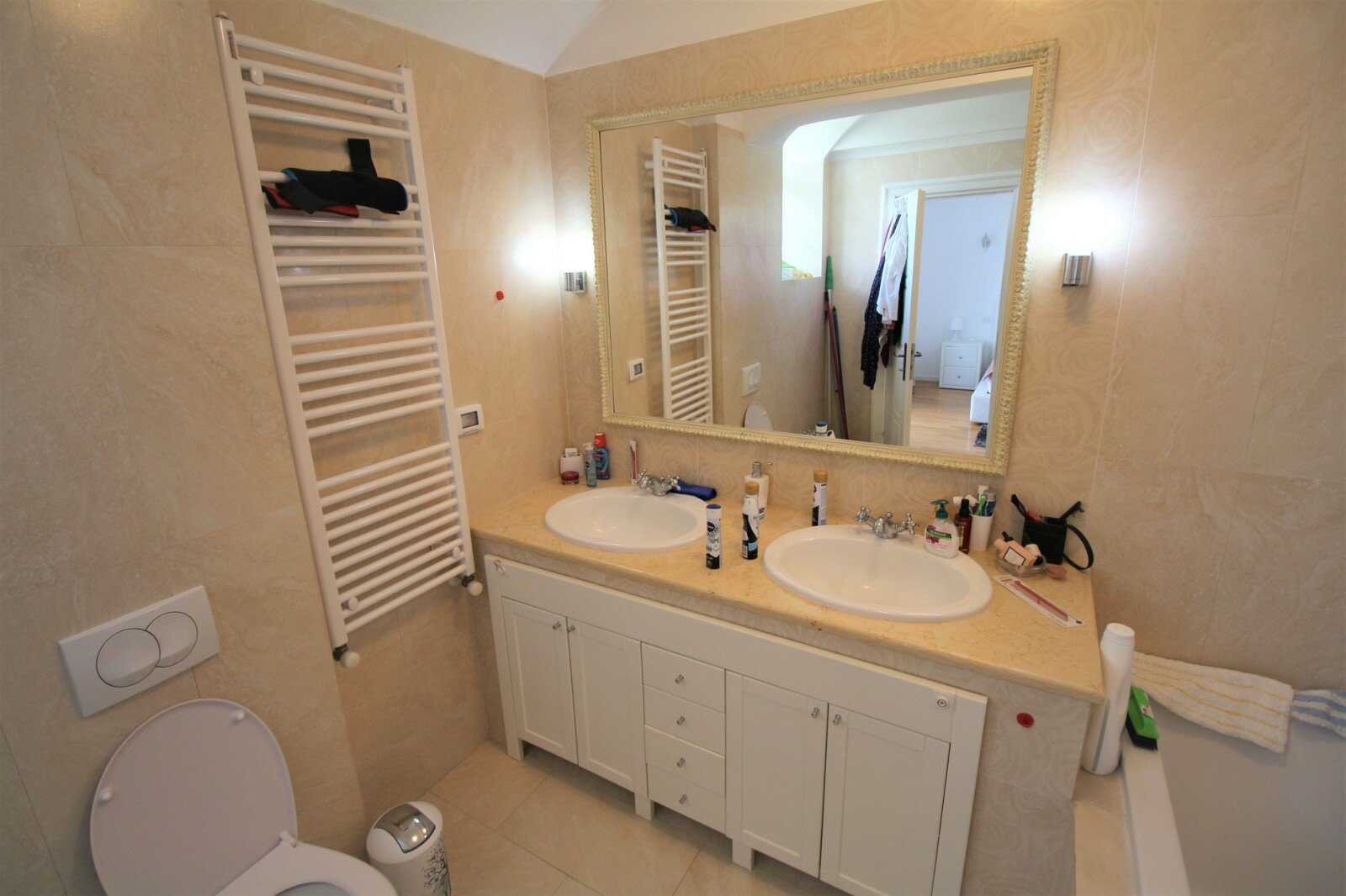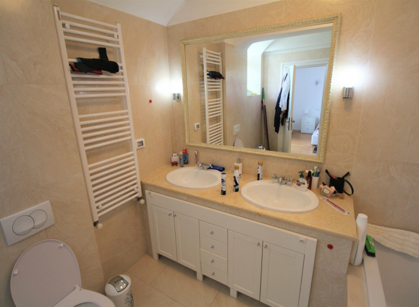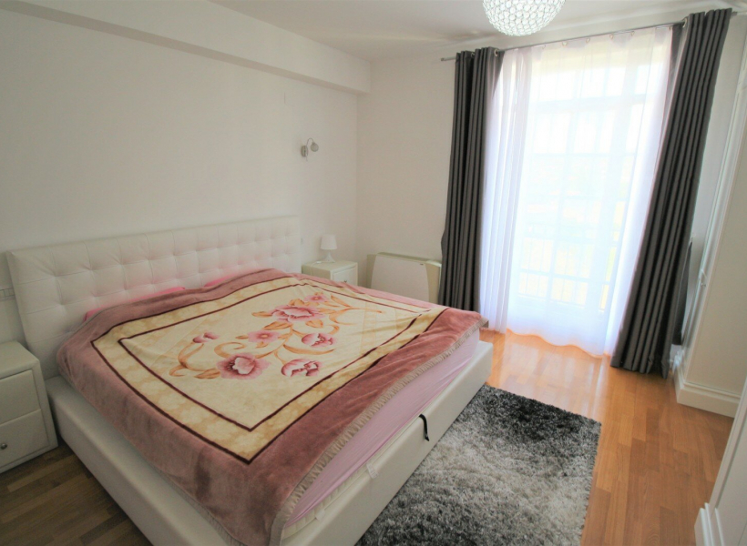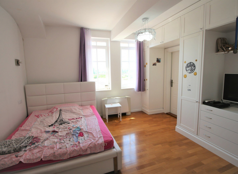 The apartment is fully equipped with top quality furniture and has three bedrooms with separate bathrooms for each bedroom, large and spacious living room with dining area, separate kitchen, separate room with functional fireplace and terrace with beautiful view of the lake in the complex.