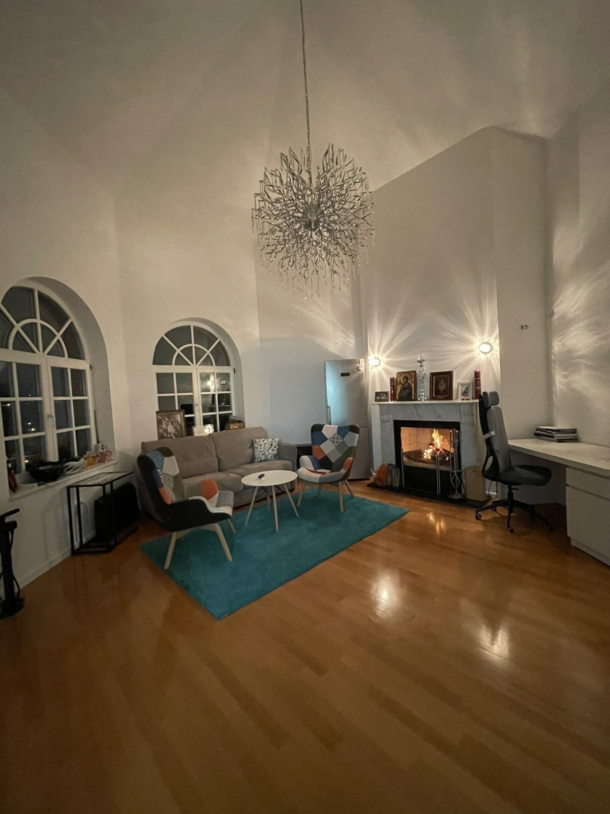 The heating and cooling in the apartment is with a private water-electricity system connected with fan coils to the whole apartment.