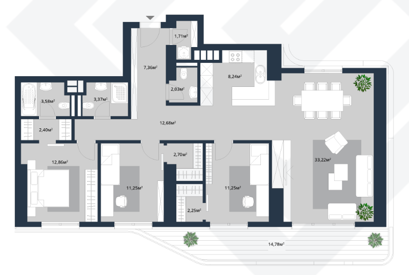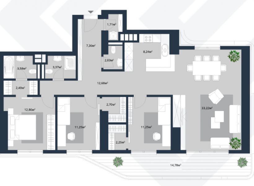 Spacious 131m2 apartment is available for sale in a prime location in the city center.