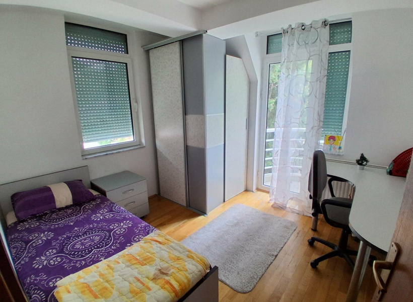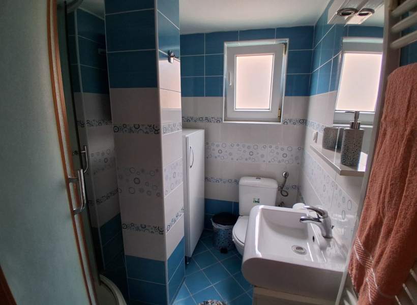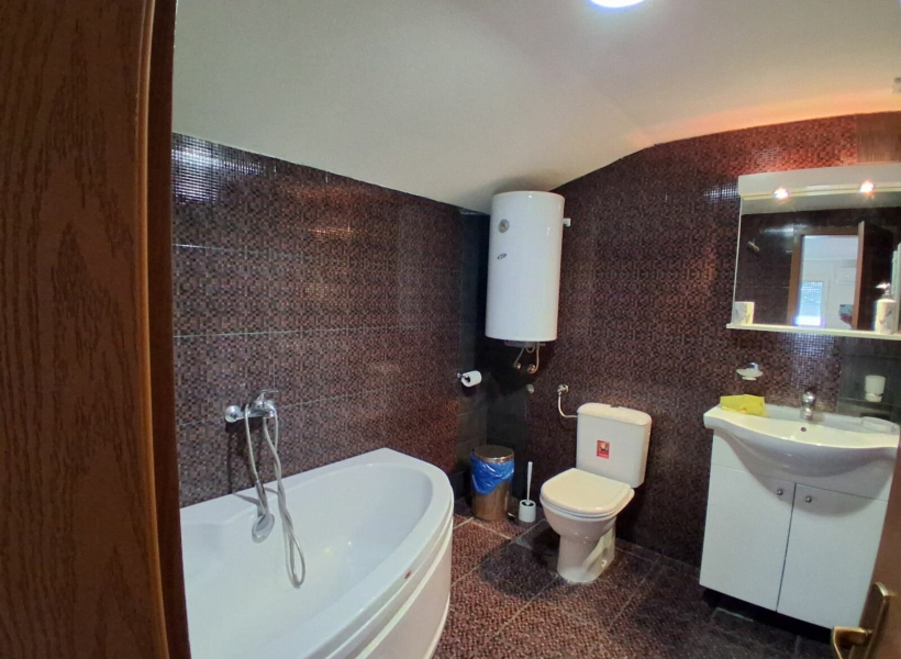 Heating and cooling are regulated by electricity with underfloor heating, radiators, and an inverter air conditioner.