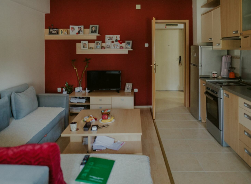 The apartment is located on the first floor with one bedroom, one living room, kitchen and toilet.