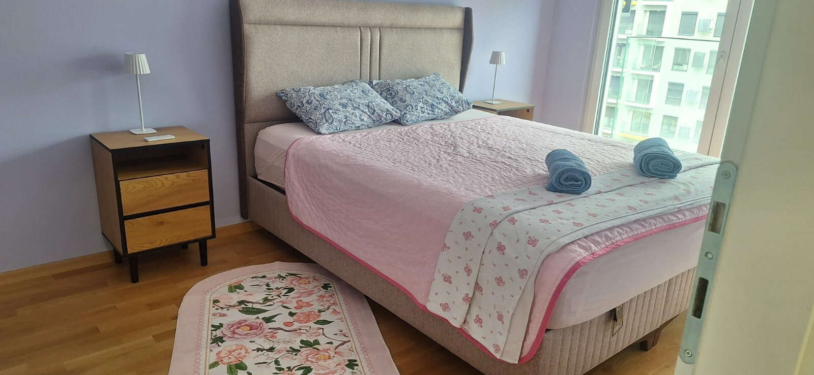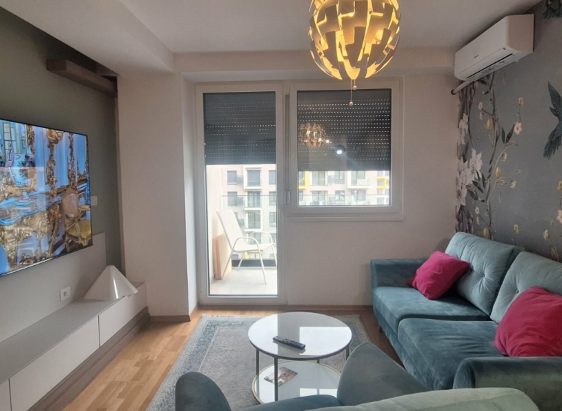facebook twitter Detail Modern 68m2 apartment available for rent located in East Gate Living complex. Features: Living room with dining area Kitchen Two Bedrooms Two Bathrooms Two Balconies Heating and cooling are regulated through central city heating and an inverter air conditioning unit. Parking space is available in an underground garage. Sales Agent - Damjan Dimkovski: Contact phone: +389 78 306 083 Email: sales@propertyone.mk Info 24h controlled access air conditioning balcony / patio elevator equipped equipped kitchen fully equipped intercom parking / garage public heating washer / dryer machine Contact +389 78 30 60 83 bul. 8 Septemvri br.3 contact@propertyone.mk Skopje, 1000, Macedonia