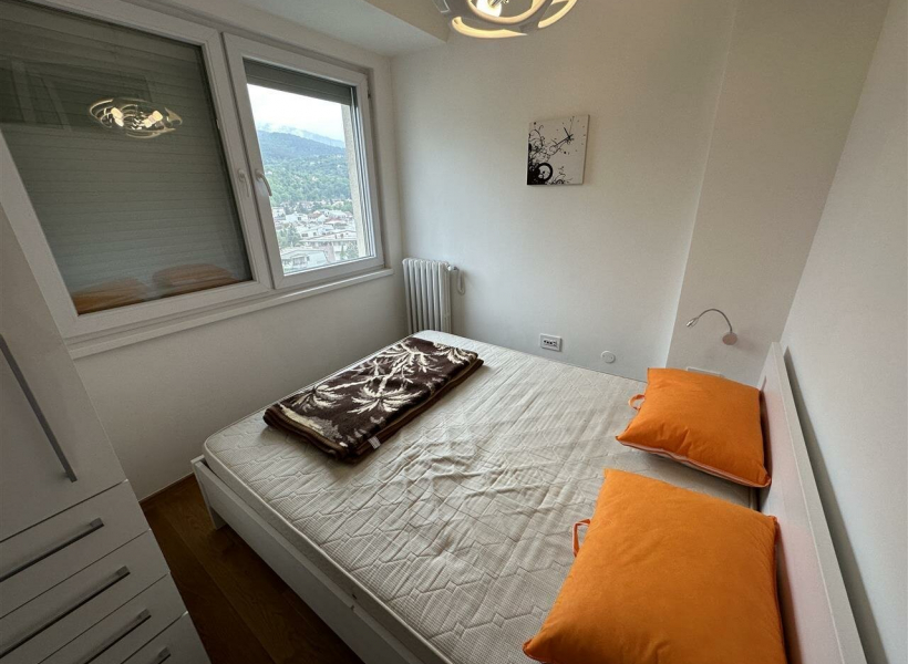 The apartment has two bedrooms, living room with dining room, kitchen and toilet.