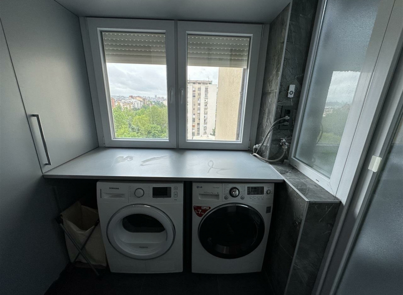 Heating and cooling in the apartment is regulated through central heating and inverter air conditioners.