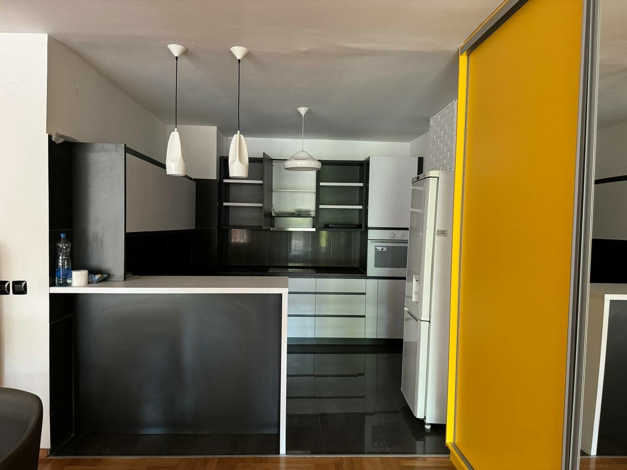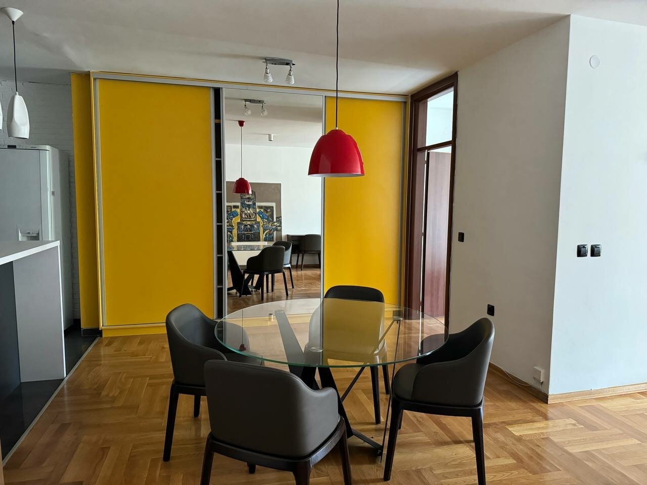 Heating and cooling in the apartment are regulated through a private electricity system.