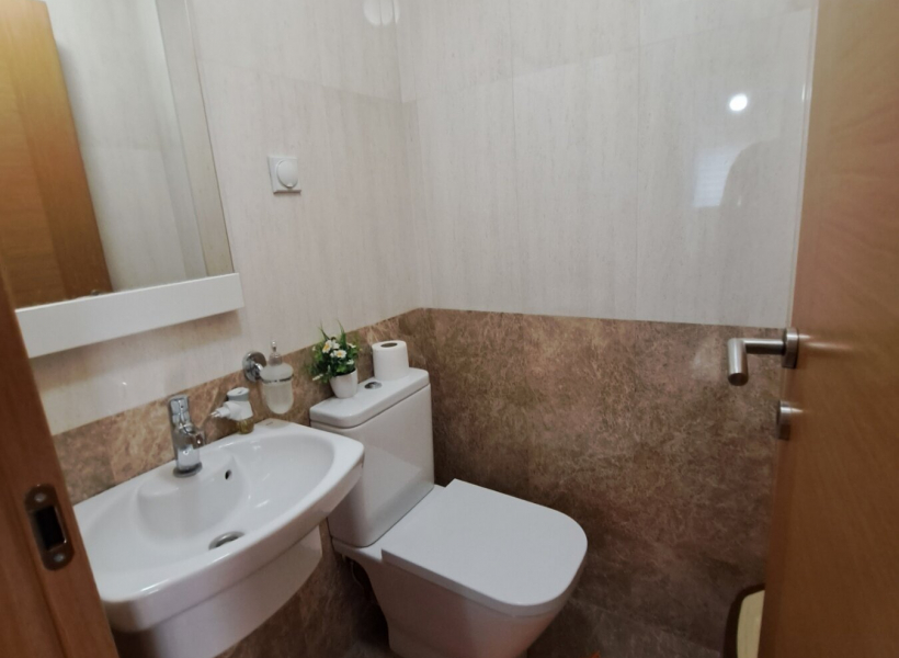 The apartment is located on the second floor and has two bedrooms, living room with dining area, kitchen, two toilets and two terraces.