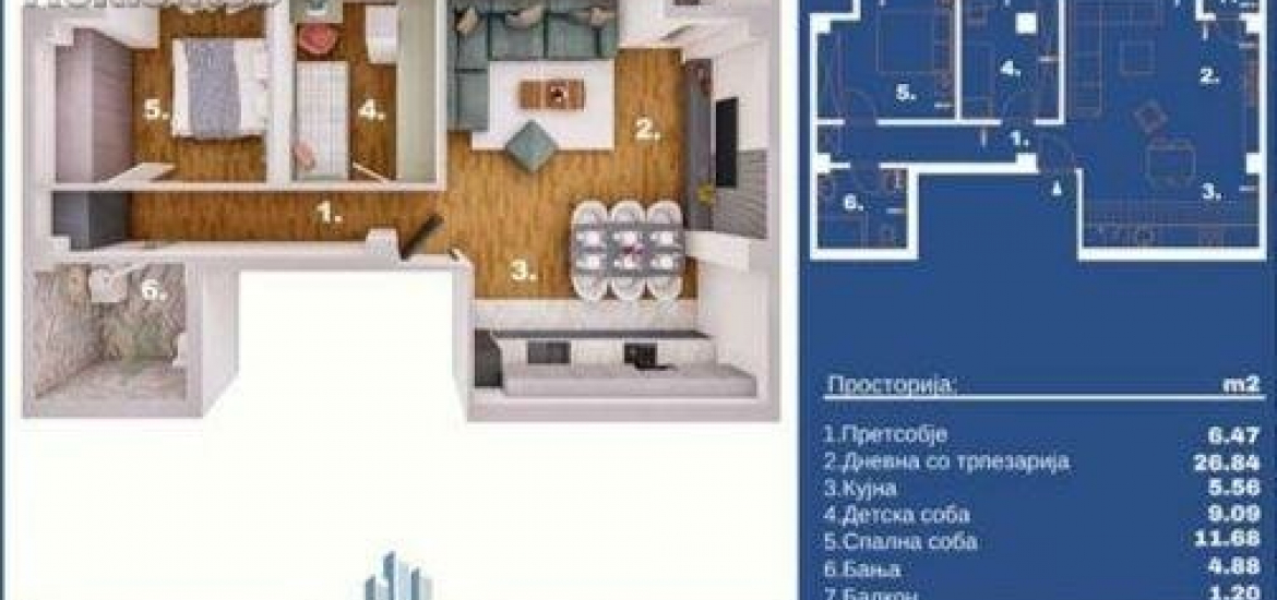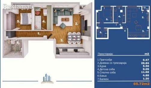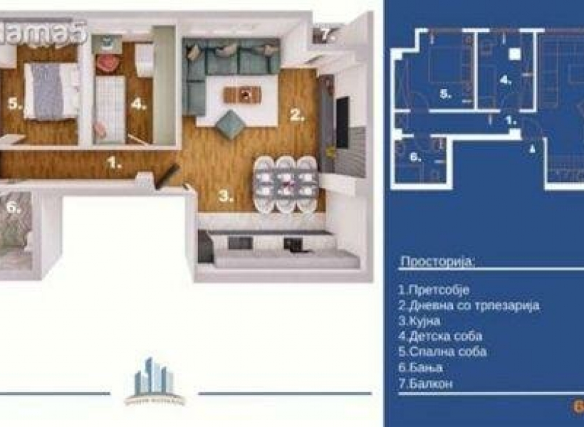 The apartment is with a size of 67m2 consiting of:
