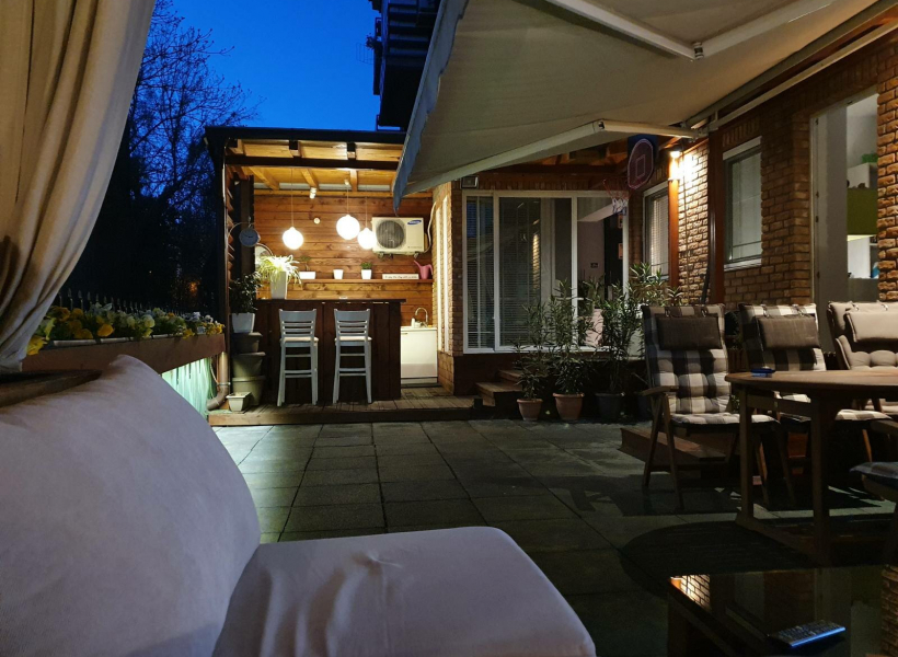 The area of the terrace is 60m2, available for sale at a price of 1250eur/m2.
