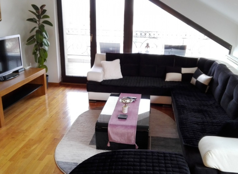 Beautiful apartment located on a peaceful location in Crniche neighbourhood with a beautiful view in a house designed for individual housing near the city center. It has 2 bedrooms and 2 terraces and 1 parking place.