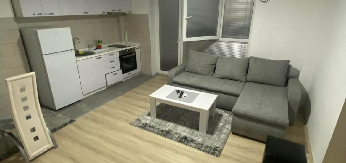 The apartment has a living room, 1 bedroom, 1 bathroom and 1 pantry.