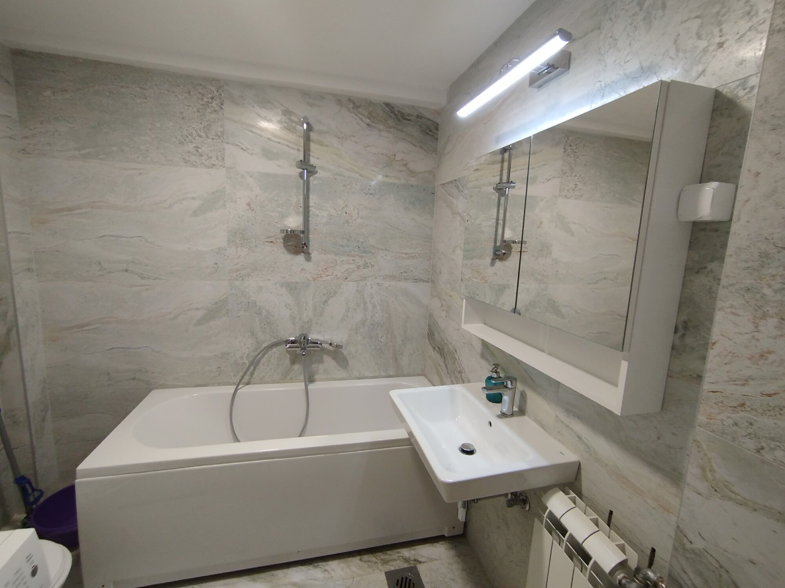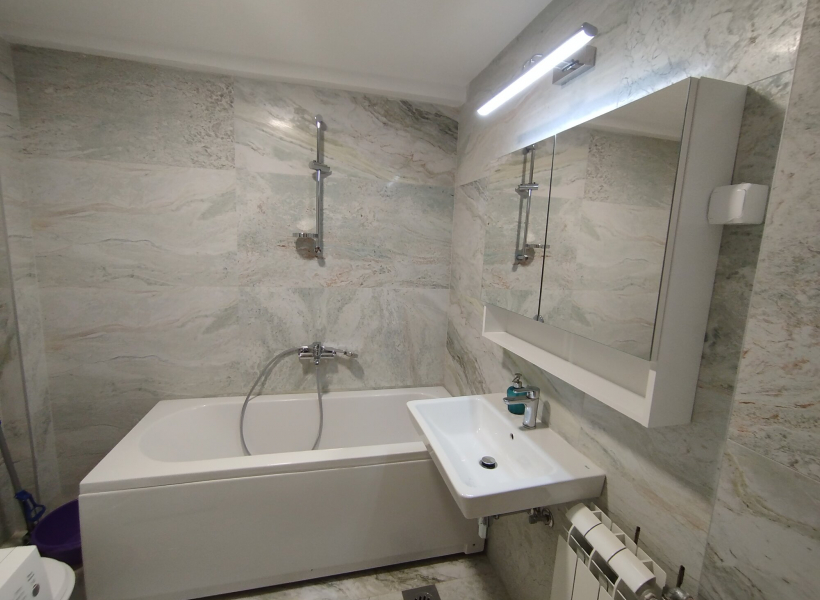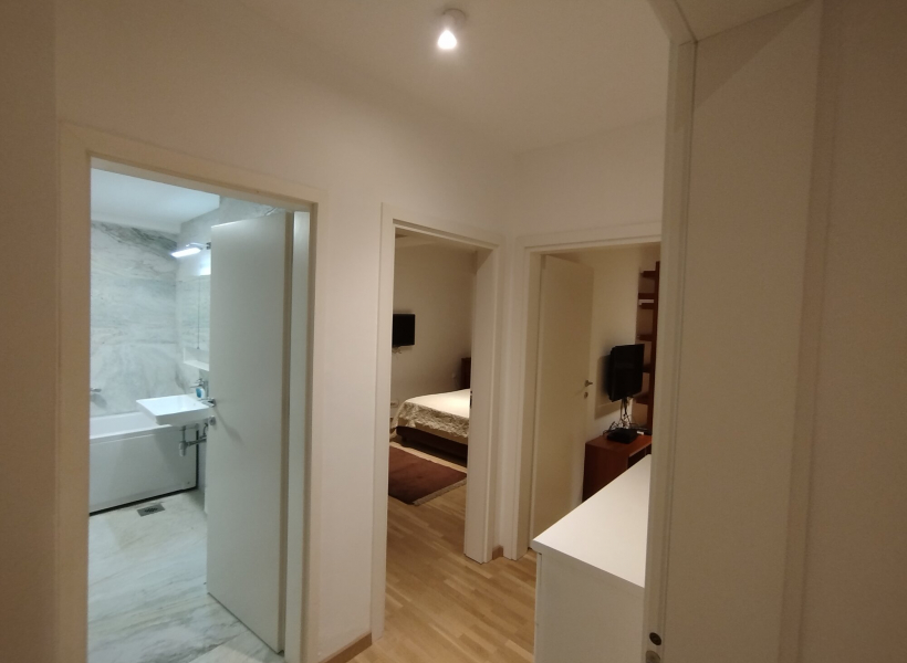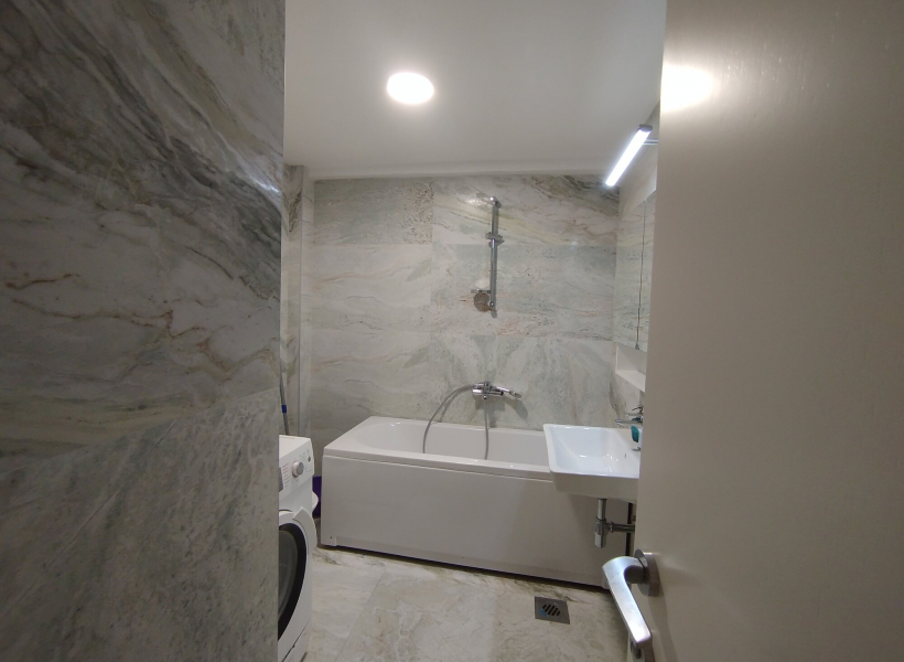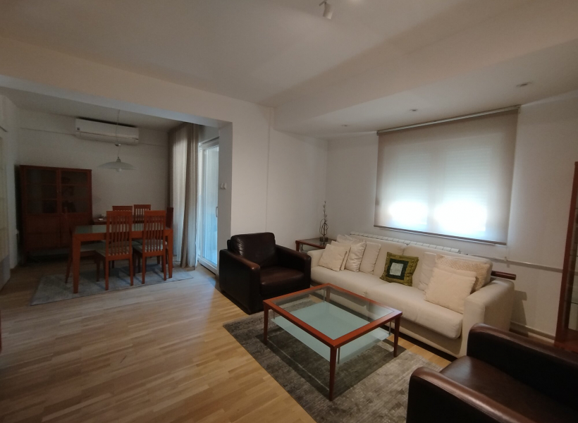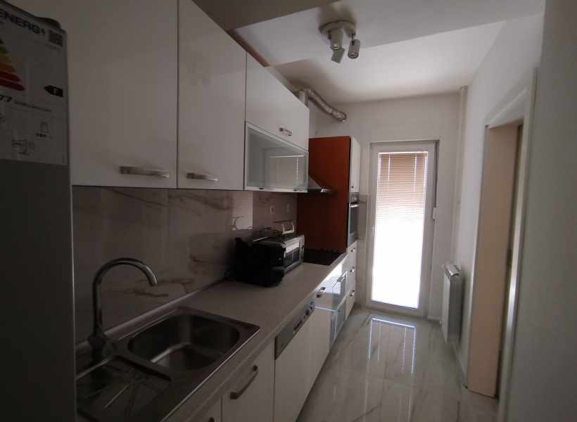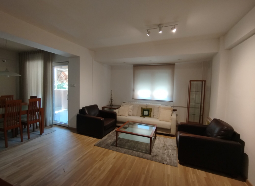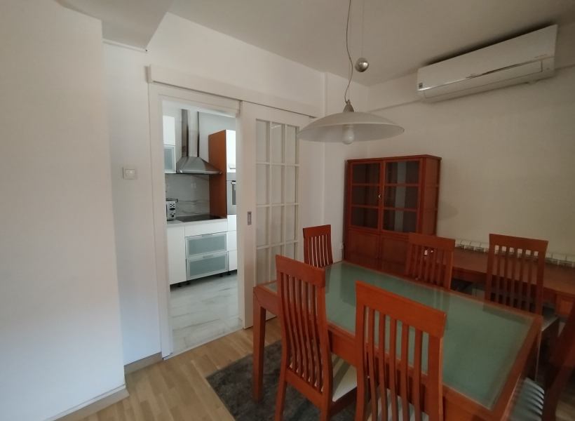 The apartment is with a size of 84m2, with 2 bedrooms, 2 toilets and a bathroom, kitchen, living room with dining room, 2 terraces and a parking space in a residential area with a ramp.