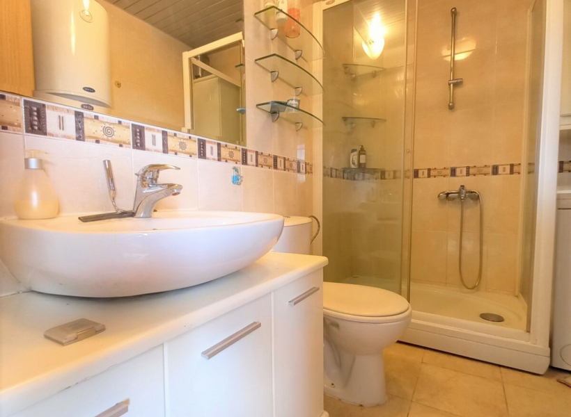 The apartment has a living room with dining area, kitchen, bedroom with pantry, bathroom and large terrace.