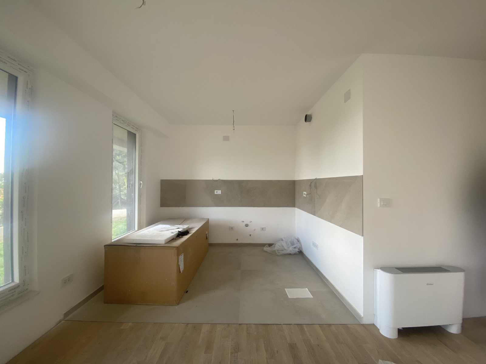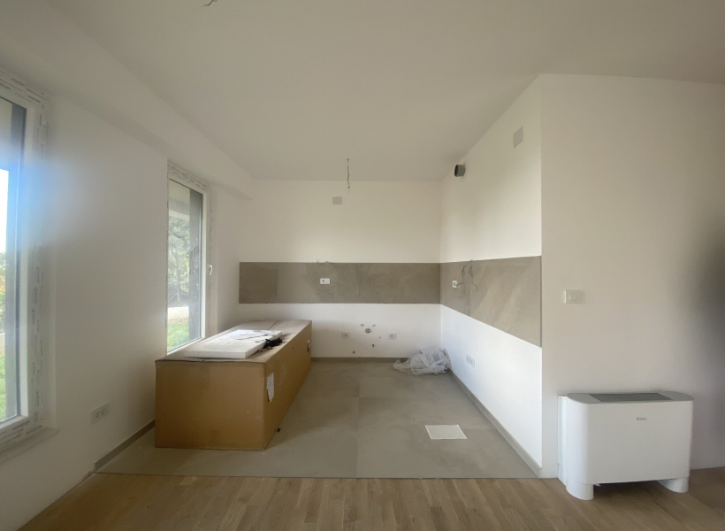 The apartment is equipped with a fan-coil system for efficient heating and cooling.
