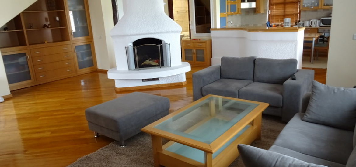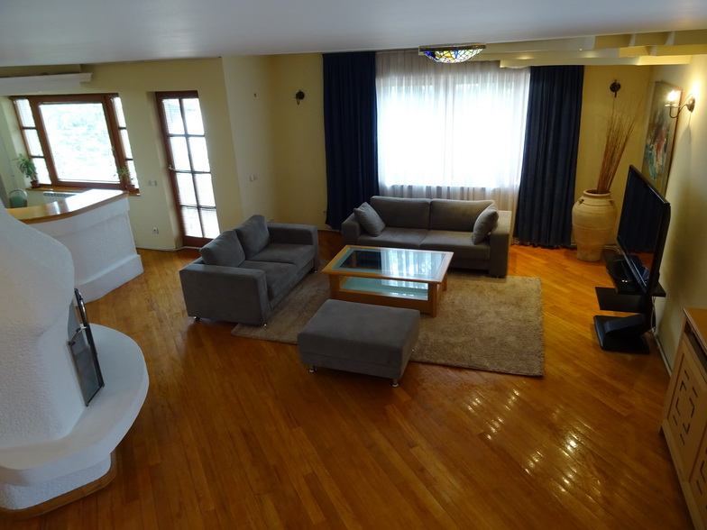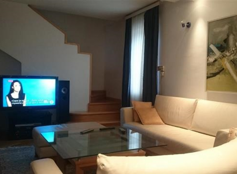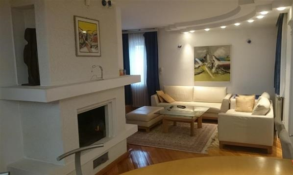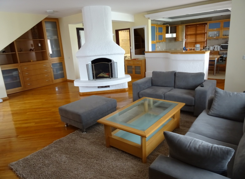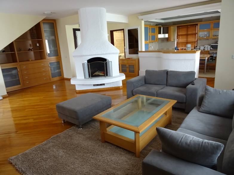 Apartments in a house available for rent separately or the whole house in Trnodol on tranquil and green location. The apartments are duplex on two levels. On one level there is a lounge with a dining room, kitchen and toilet. On the upper level are two bedrooms with a bath. In the common courtyard there is a swimming pool. Heating is on a steam and air conditioners.