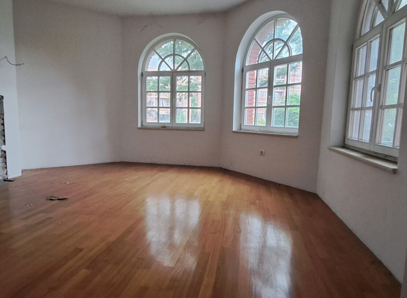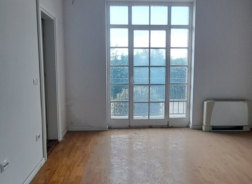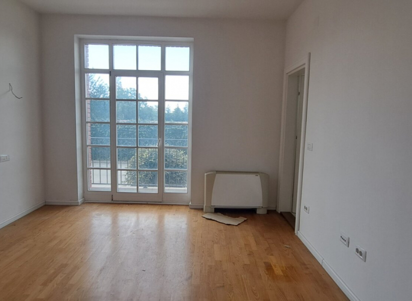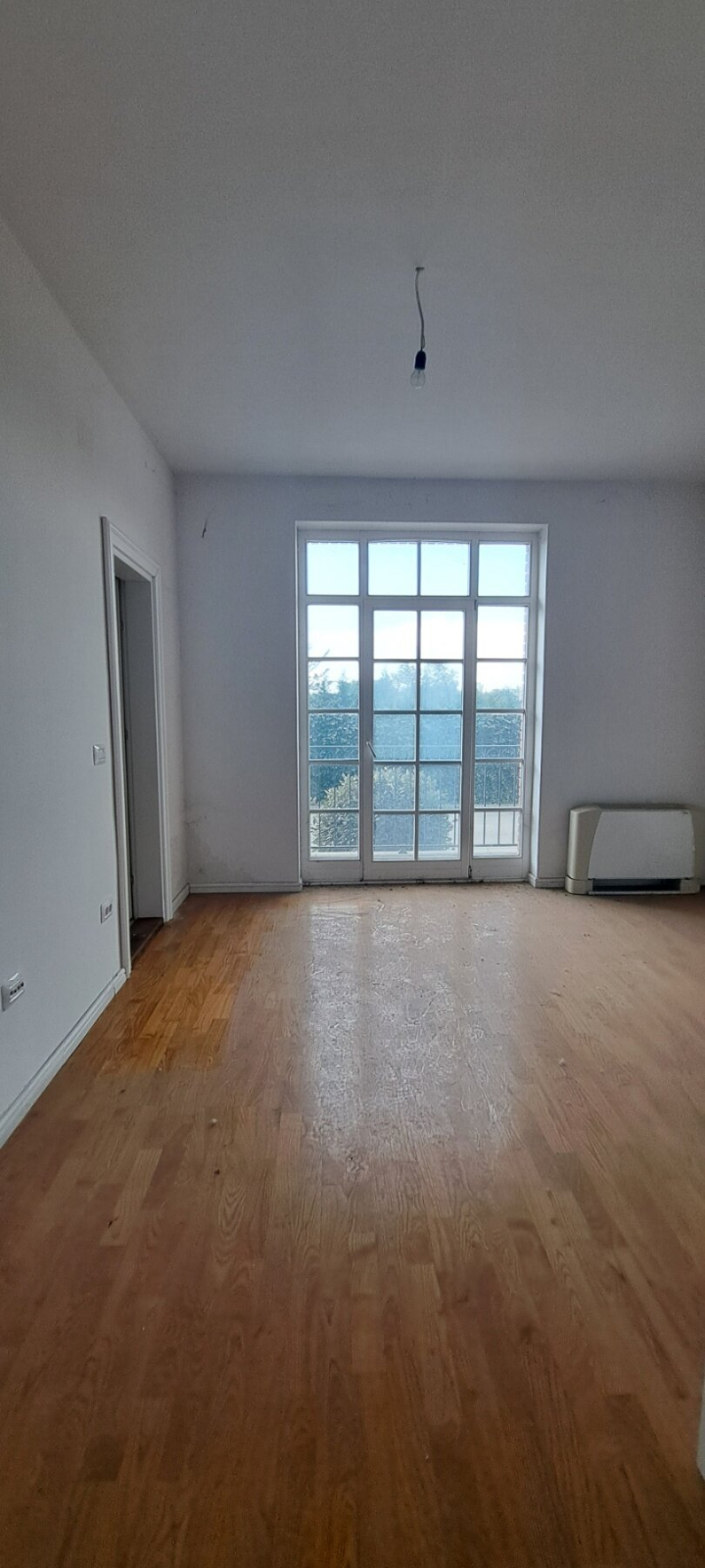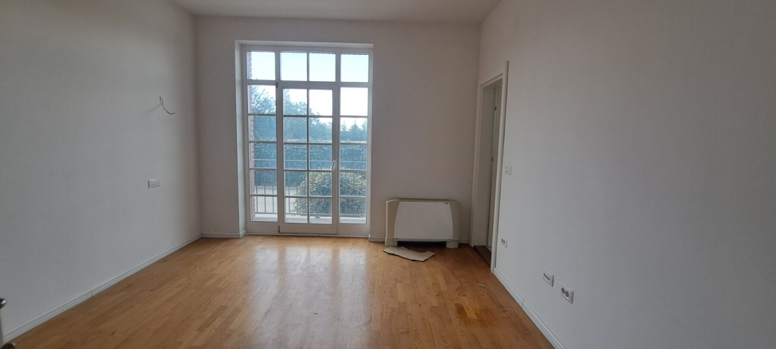 The apartment has 2 parking spaces in front of the building and a basement room of 20m2.