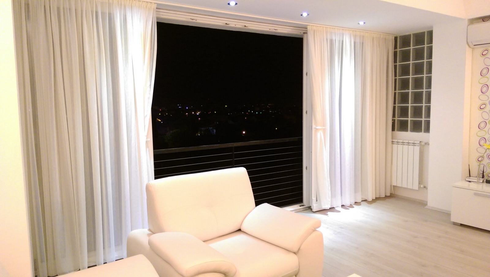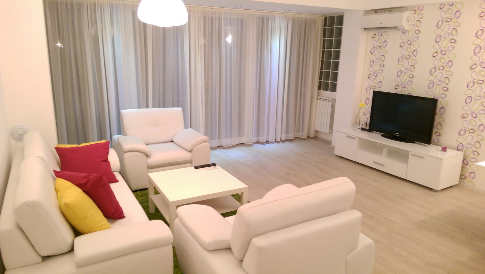 The heating and cooling in the apartment is regulated through private central heating and inverter air conditioners.