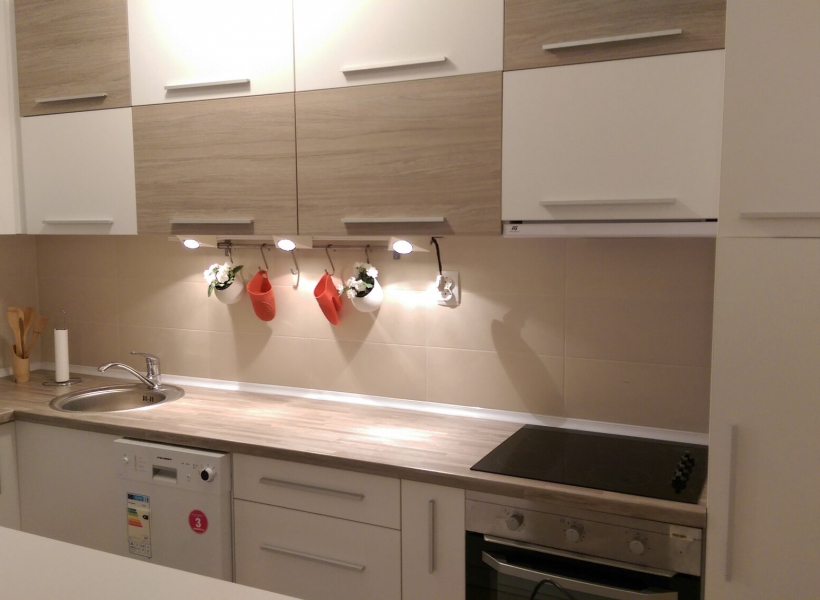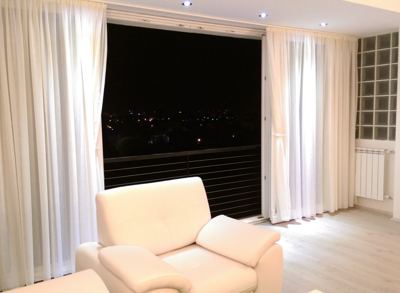 The apartment has living room with dining room, fully equipped kitchen, two bedrooms, walk-in wardrobe, toilet and a terrace with beautiful city view.