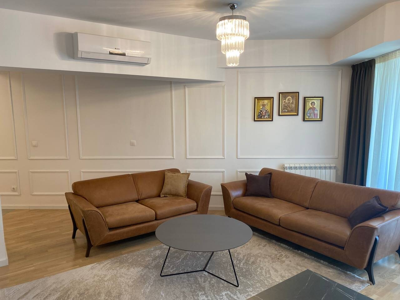 The heating and cooling in the apartment is provided through inverter air conditioners.